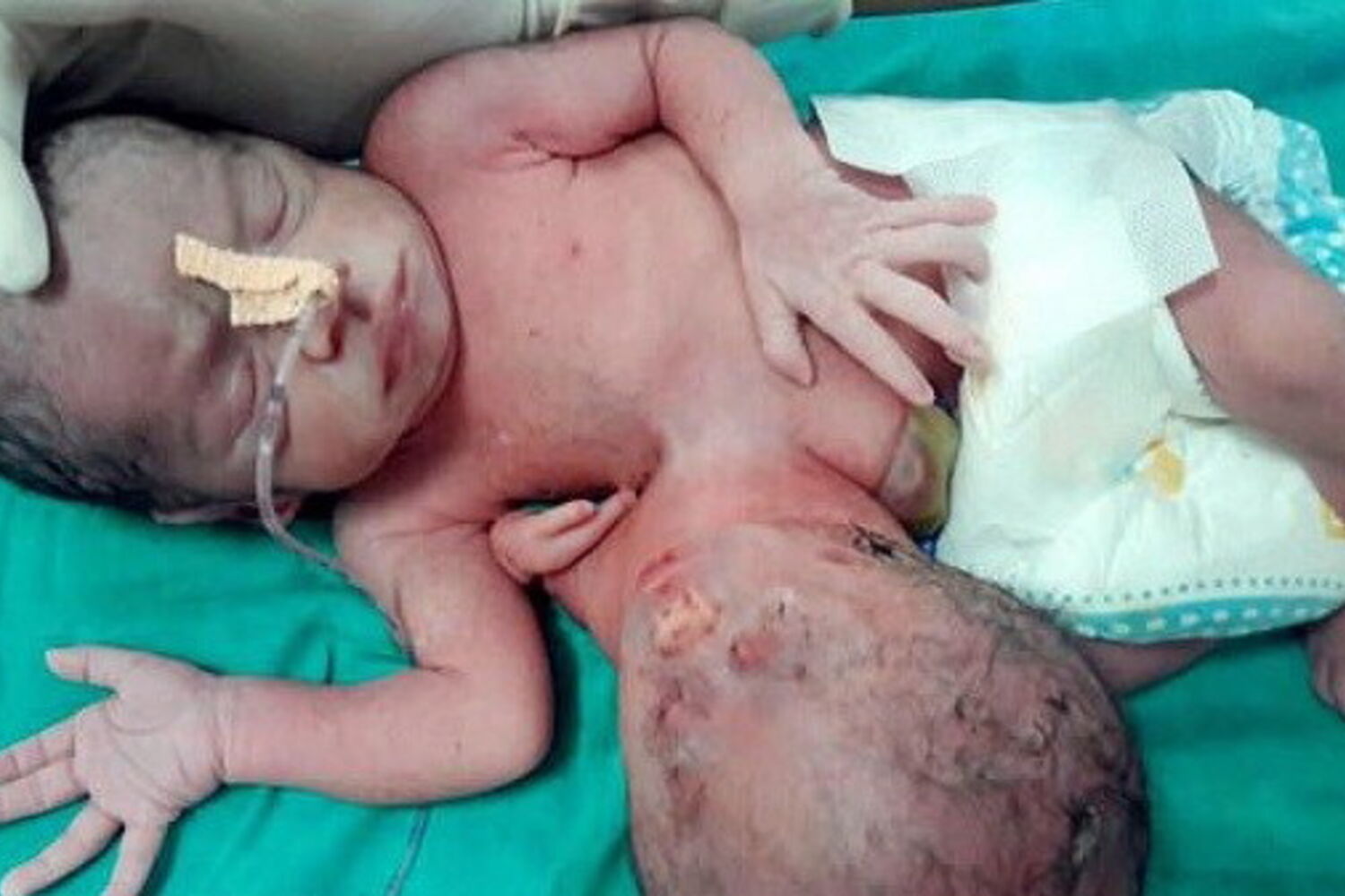 Na Indía, uma menina acabou por nascer com a cabeça do seu irmão gémeo colada à barriga, depois da gravidez da progenitora, uma mulher de 21 anos, se complicar.