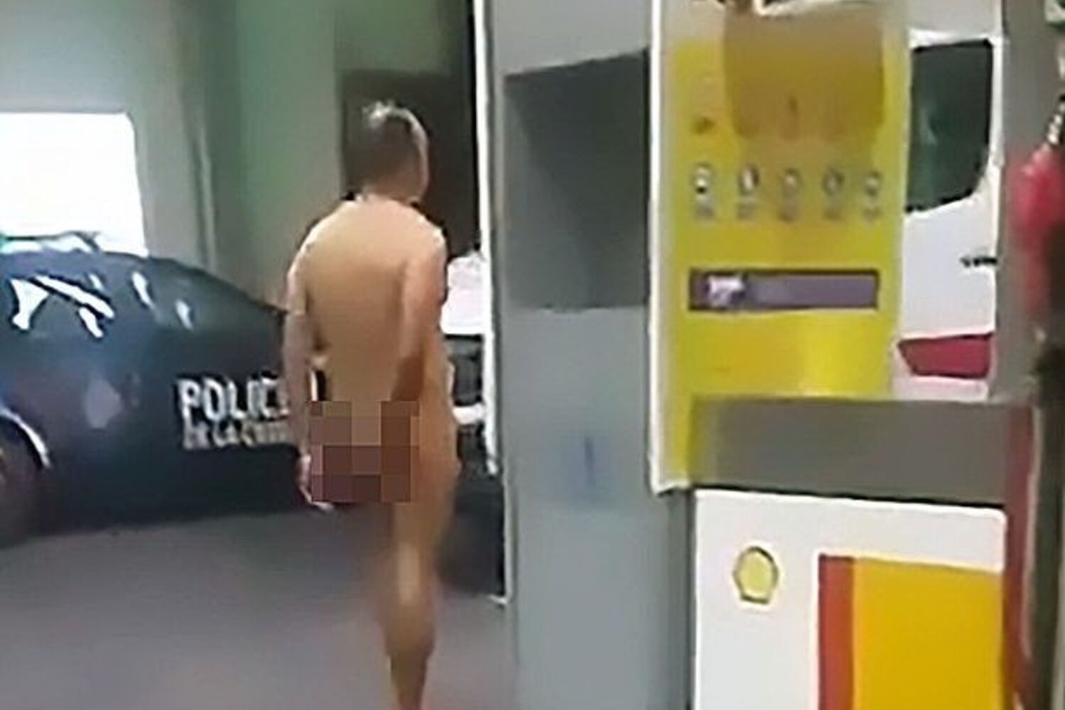 De acordo com o jornal Mirror, o homem vagueava pelo posto de combustível e gritava para que alguém ligasse para uma ambulância enquanto sacudia as pernas na tentativa de expulsar o brinquedo sexual.