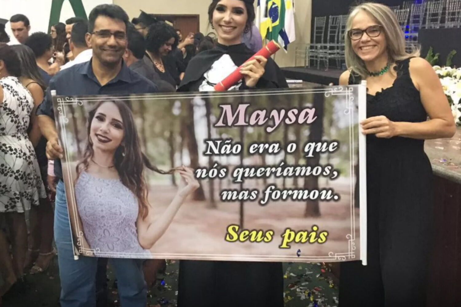 Os pais de Maysa Ferreira tornaram-se um fenómeno da internet. Isto porque Ailton Cunha e Erlaine Ferreira levaram uma faixa demasiado sincera para a festa de formatura da filha, em Tocatins, Brasil, referindo que Maysa não se formou naquilo que os pais queriam mas… estava formada.