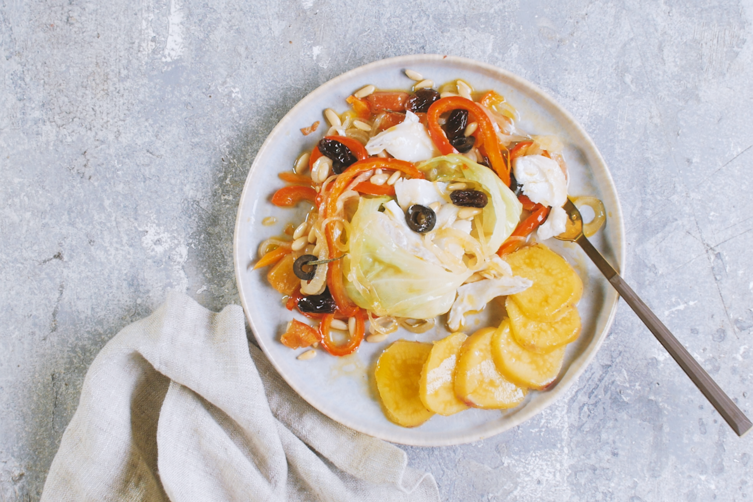 Tal como os presentes, também as trouxas de bacalhau no forno com batata-doce surgem embrulhadas em folhas de couve e decoradas com uma mistura de legumes, pinhões e azeitonas. Uma surpresa para toda a família.