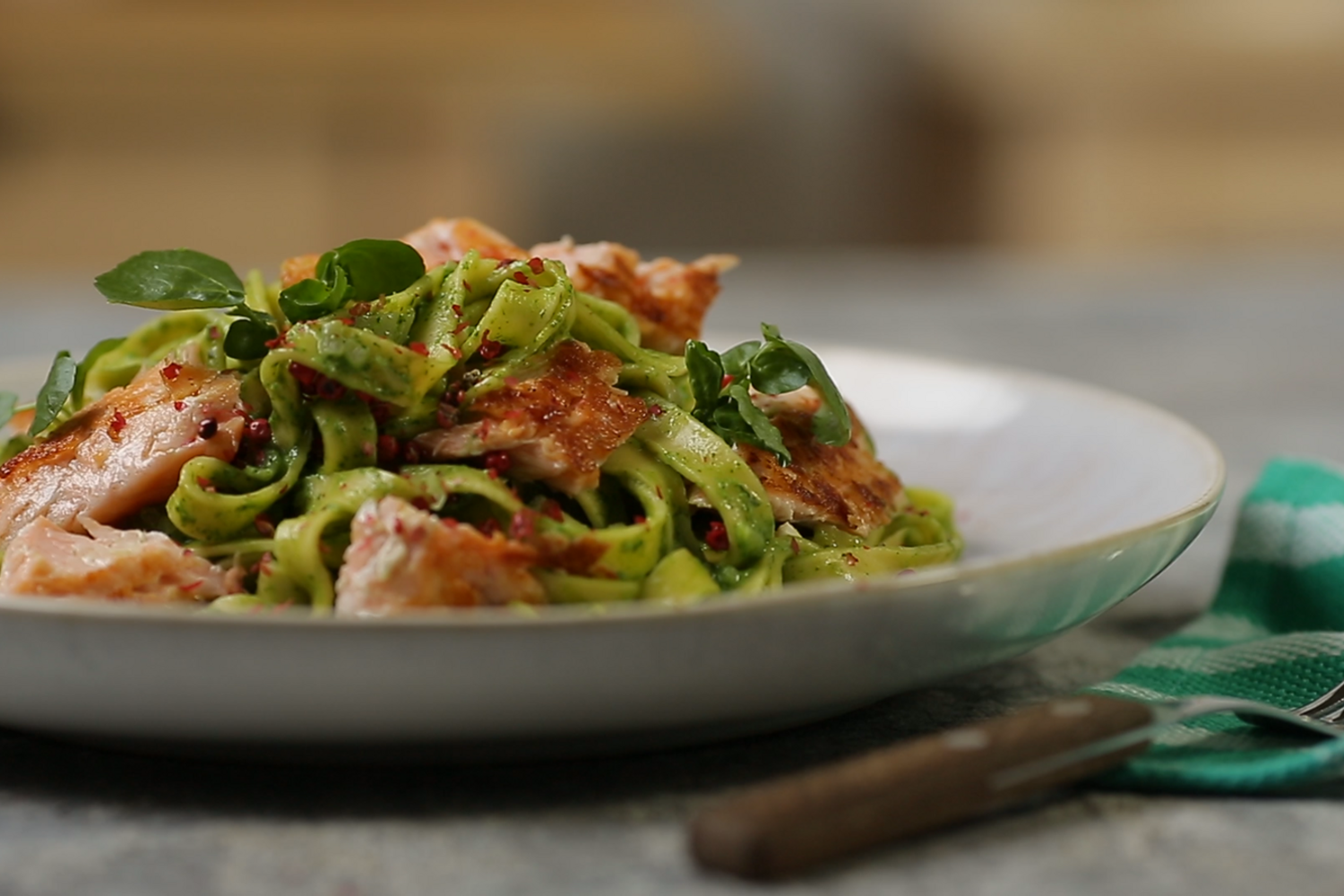 Com apenas cinco ingredientes, o tagliatelle de agrião e salmão é superfácil de preparar e faz um brilharete em qualquer ocasião.