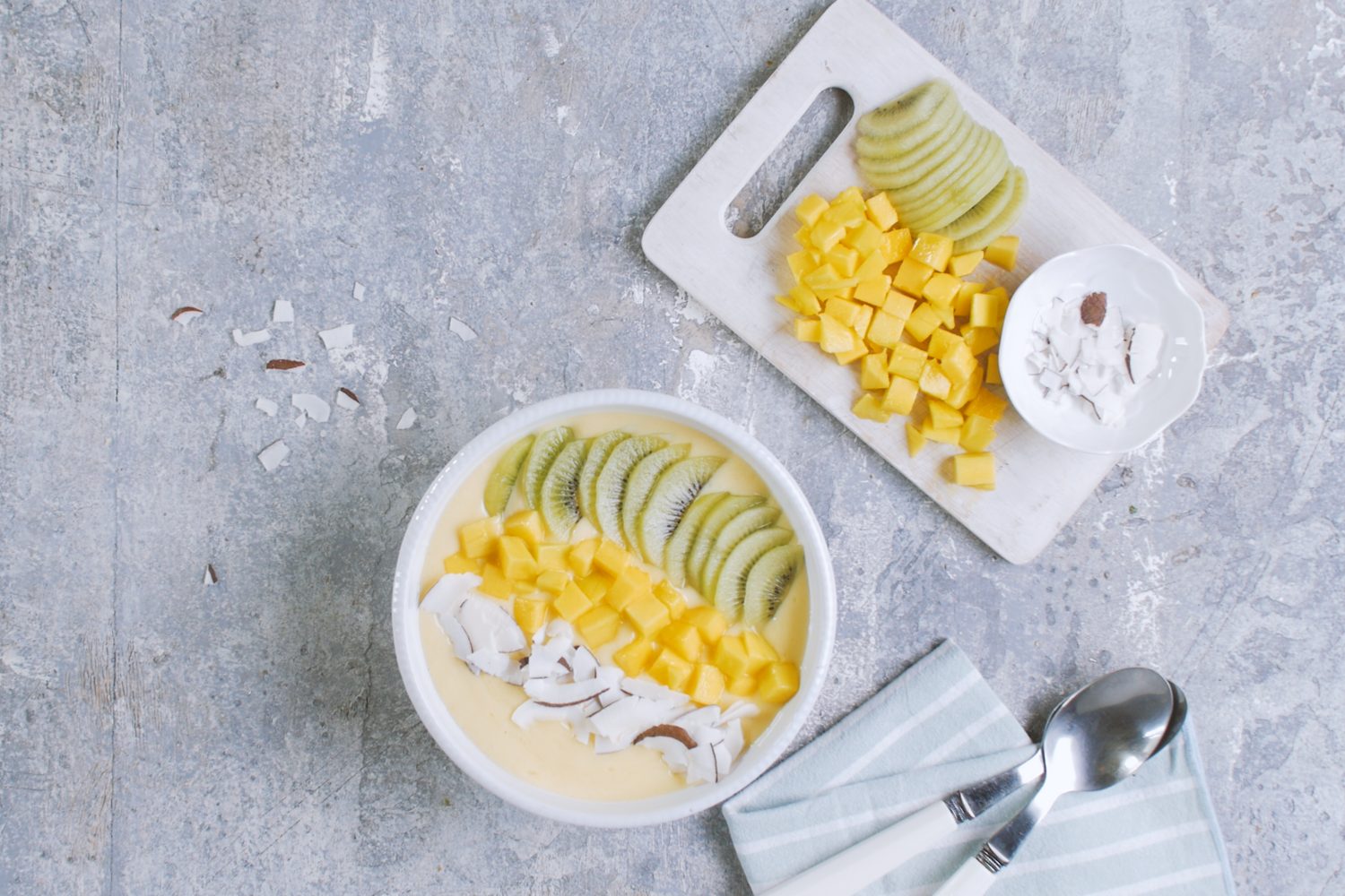 Ao pequeno-almoço a fruta dá as cartas na taça de manga e coco, um nutritivo cocktail colorido repleto de alimentos saudáveis, que vai saber ainda melhor se acompanhado por um presente especial feito pelos filhos: um miniálbum de fotos com legendas divertidas.