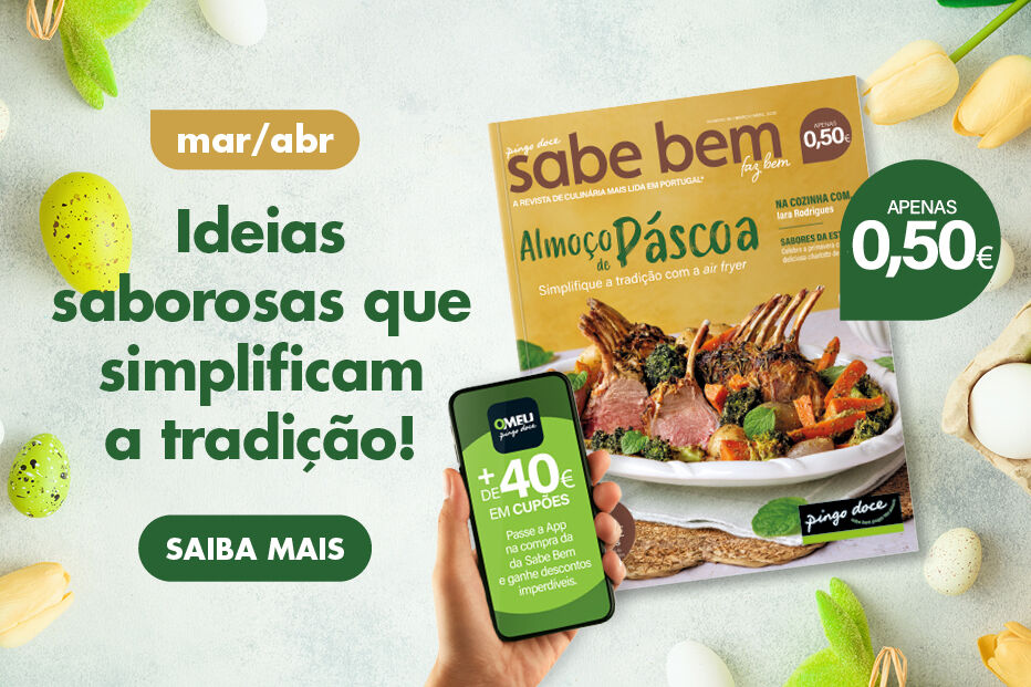 Veja esta e outra receitas deliciosas, pensadas para toda a família, reinterpretando sabores clássicos e combinando tradição com praticidade, na nova edição da revista Sabe Bem, já à venda nas lojas Pingo Doce e online.