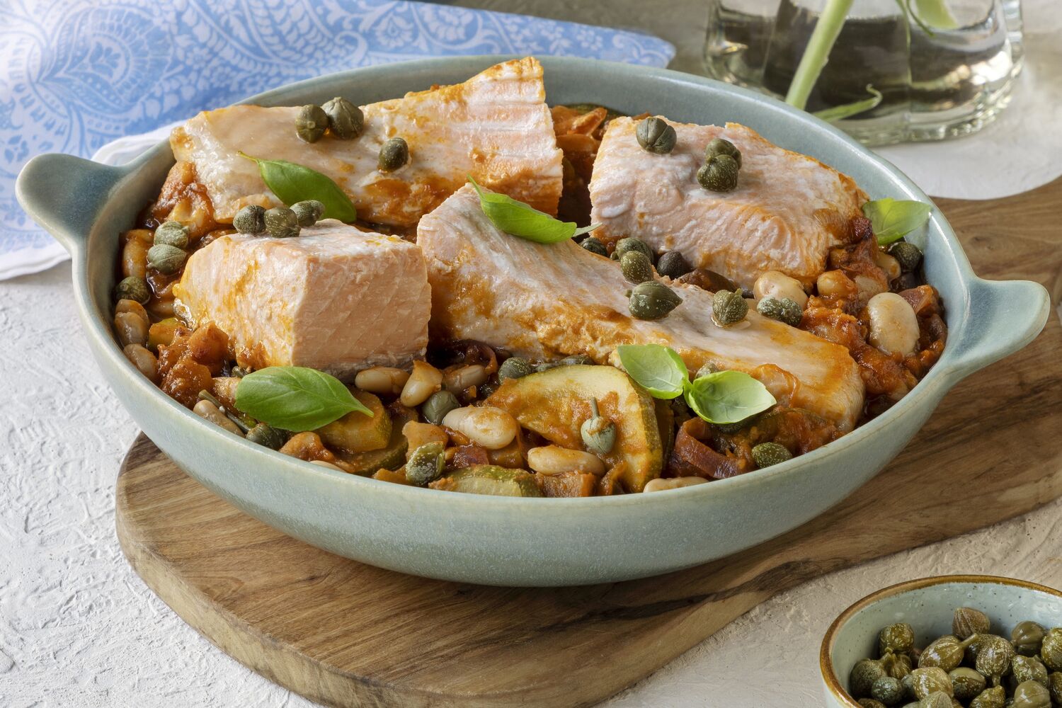6. No final, adicione as alcaparras, mexa delicadamente e sirva de imediato acompanhado das batatas.