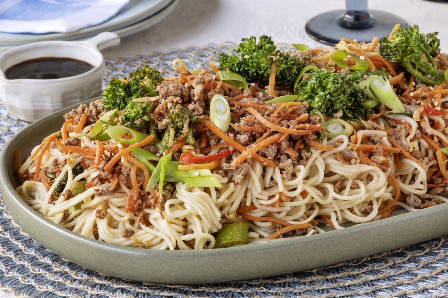 5. Adicione o molho de soja e a massa cozida à mistura de carne e legumes