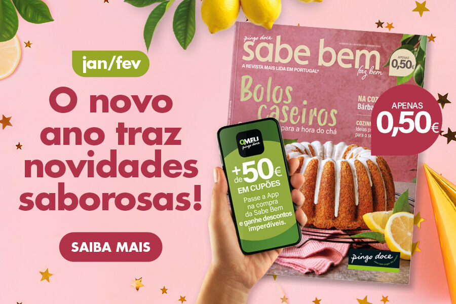 Veja esta e outra receitas deliciosas, assim como dicas imperdíveis para facilitar o dia a dia, na nova edição da revista Sabe Bem, já à venda nas lojas Pingo Doce e online.