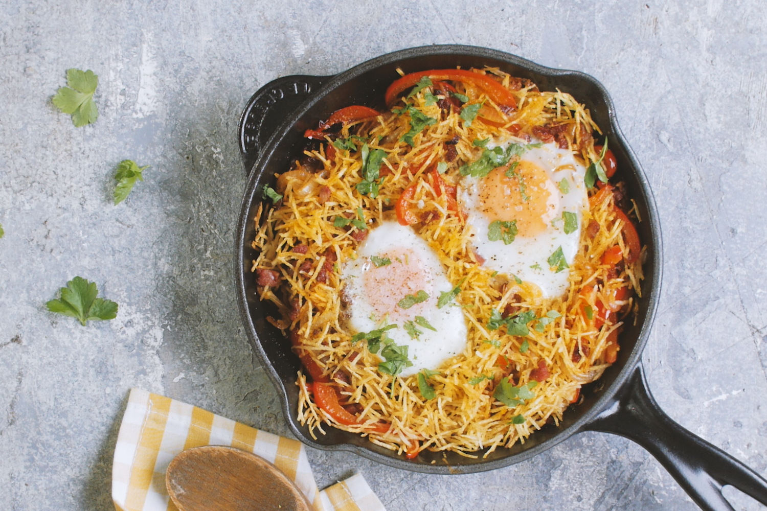 O fim de semana pede refeições fora de horas, fáceis e rápidas. Prepare um brunch para comer nas calmas: ovos rotos com chouriço e batata palha