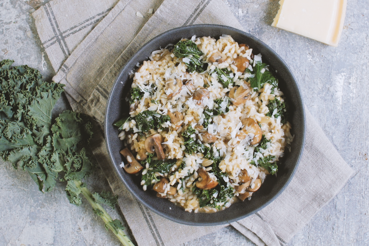 Repleto de sabores mediterrânicos, o cremoso risotto de cogumelos e couve kale não podia faltar. O queijo parmesão dá-lhe o toque de mestre final.
