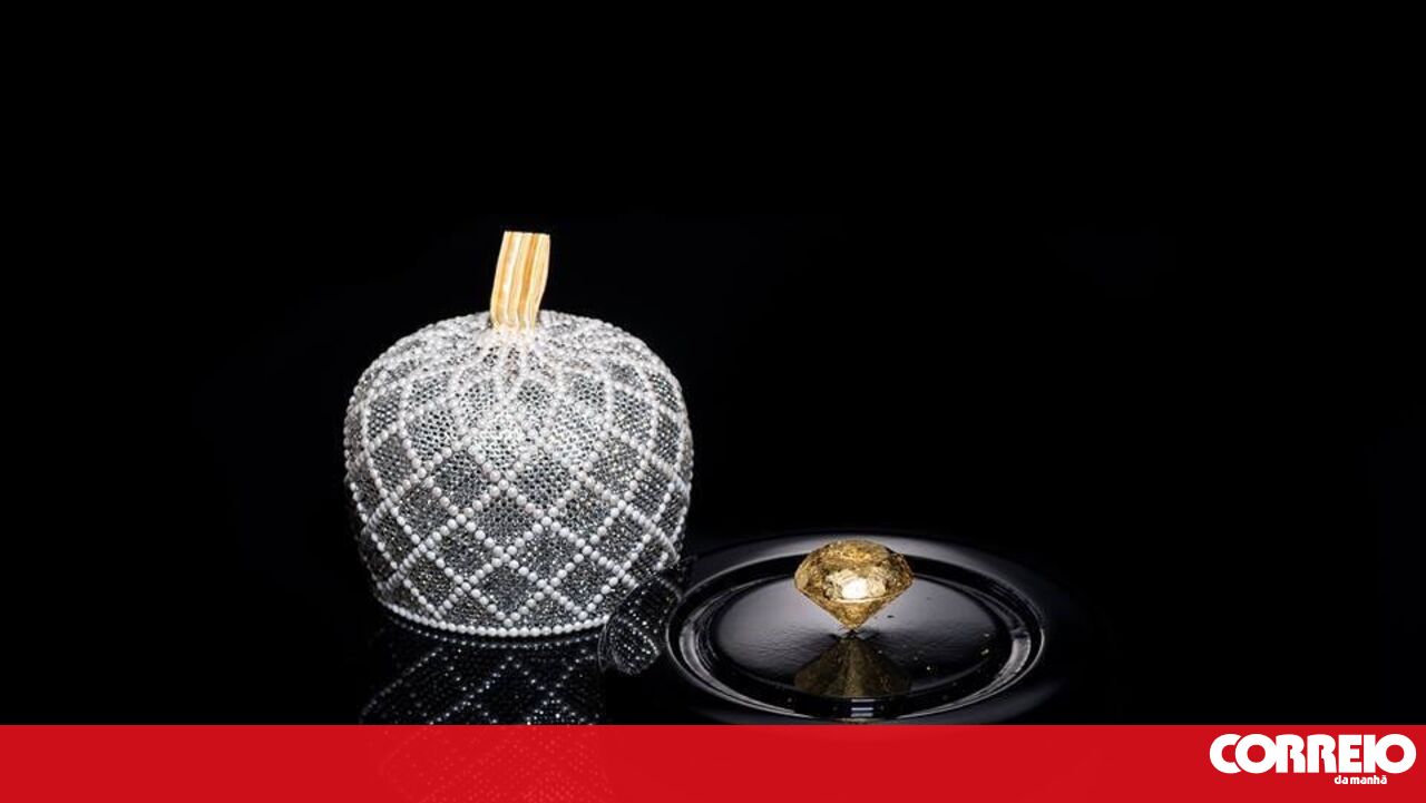 O bombom, único no mundo, custa 7.728 euros e é revestido a puro ouro de 23 kilates.
