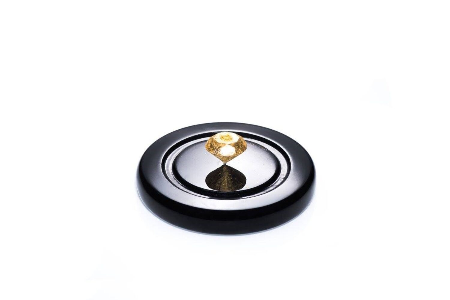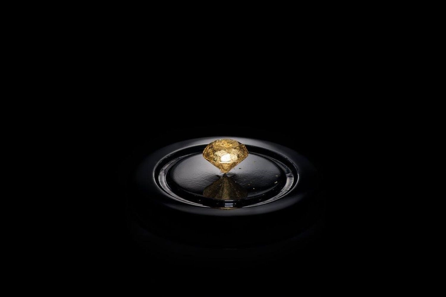 Ao chocolate Valrhona negro equatorial juntam-se, no interior, filamentos de açafrão, trufa branca Perigord, óleo de trufa branca, baunilha de Madagáscar, flocos de ouro... e um ingrediente secreto.