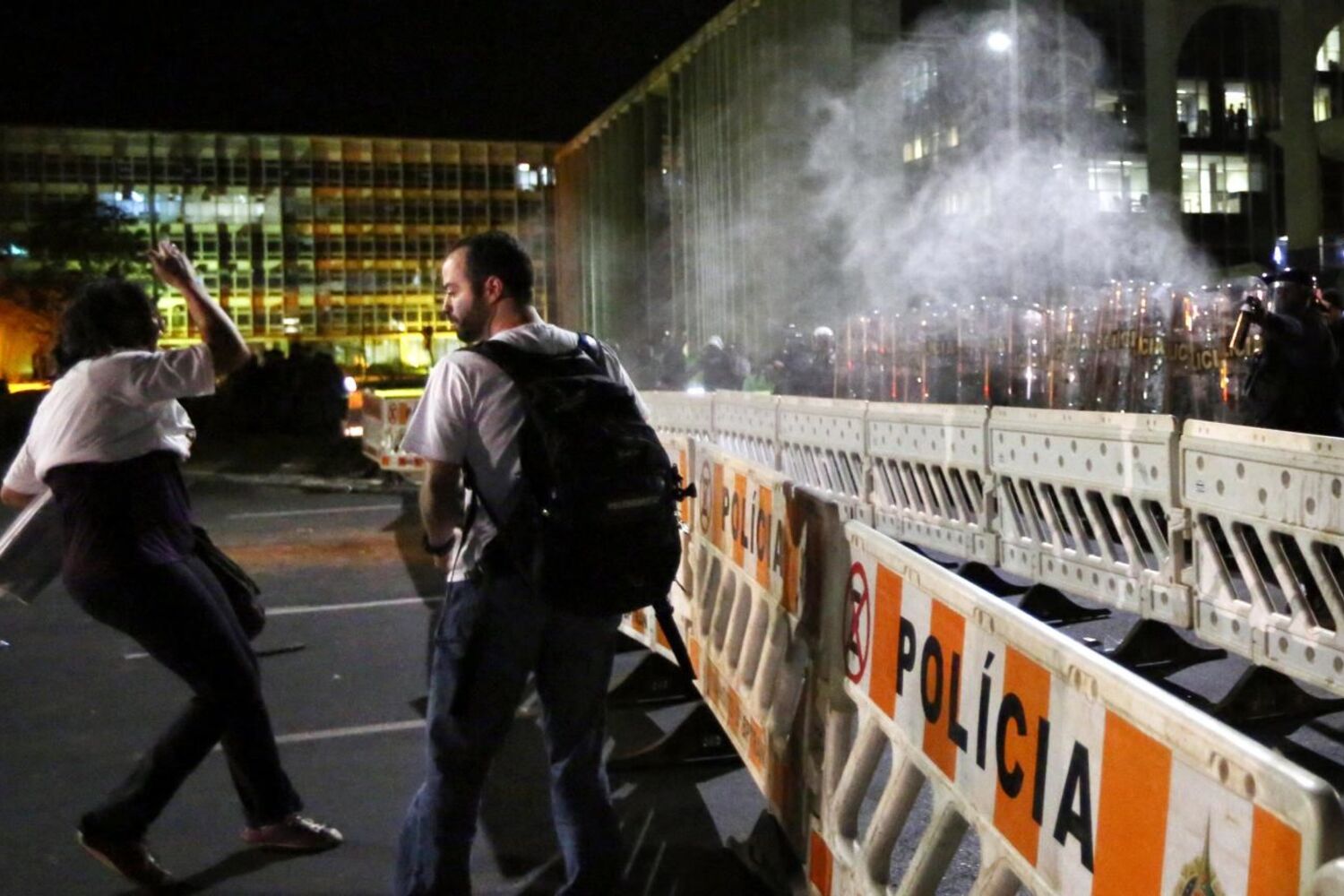 Manifestantes arremessaram pedras e outros objetos contra os agentes policiais e também fogo-de-artifício, ao que a Polícia Militar respondeu com gás lacrimogéneo, provocando os confrontos, mostram as imagens televisivas.
