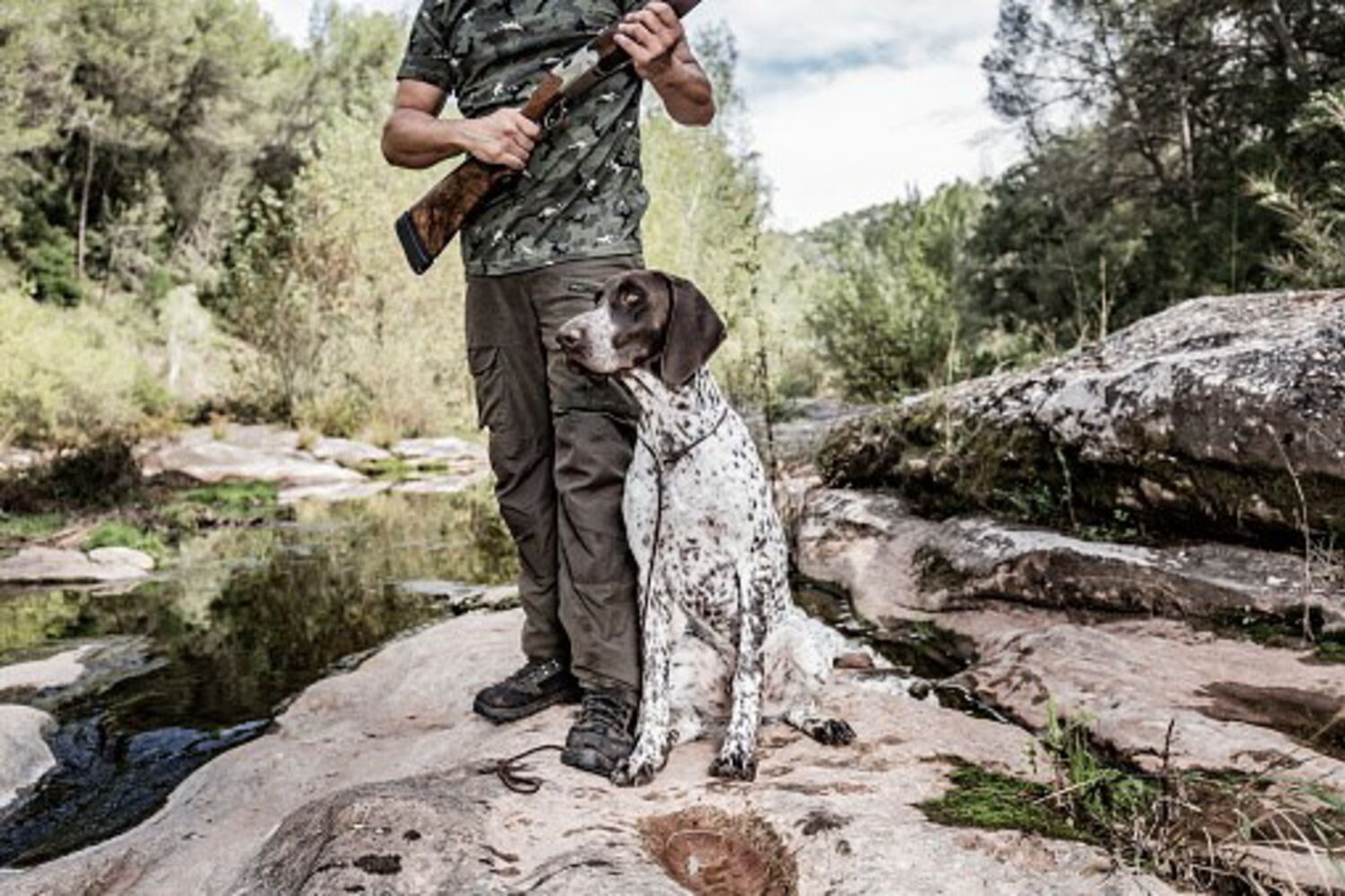 O caçador e dono do cão, que estava a cerca de 20 metros da arma foi atingido nas costas.