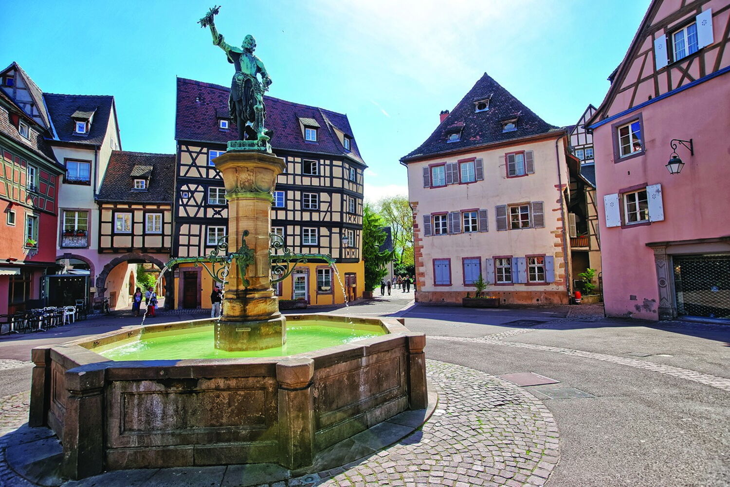Localizada na fronteira, a região foi durante séculos alvo de disputas entre os dois países e dominada alternadamente por ambos. Em Colmar são visíveis as influências alemãs na gastronomia e arquitetura. La Maison des Tetes é um dos edifícios mais curiosos e data de 1609.