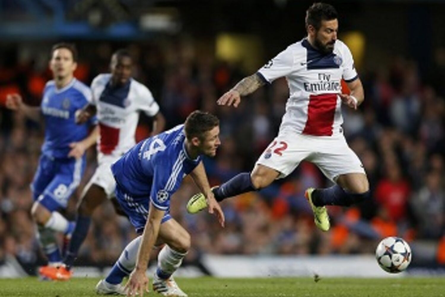 Mas o PSG também estava em jogo e teve uma boa oportunidade para empatar o jogo, num livre de Ezequiel Lavezzi. O remate do argentino encontrou as luvas de Peter Cech. As oportunidades agora sucediam-se para um e para outro lado.