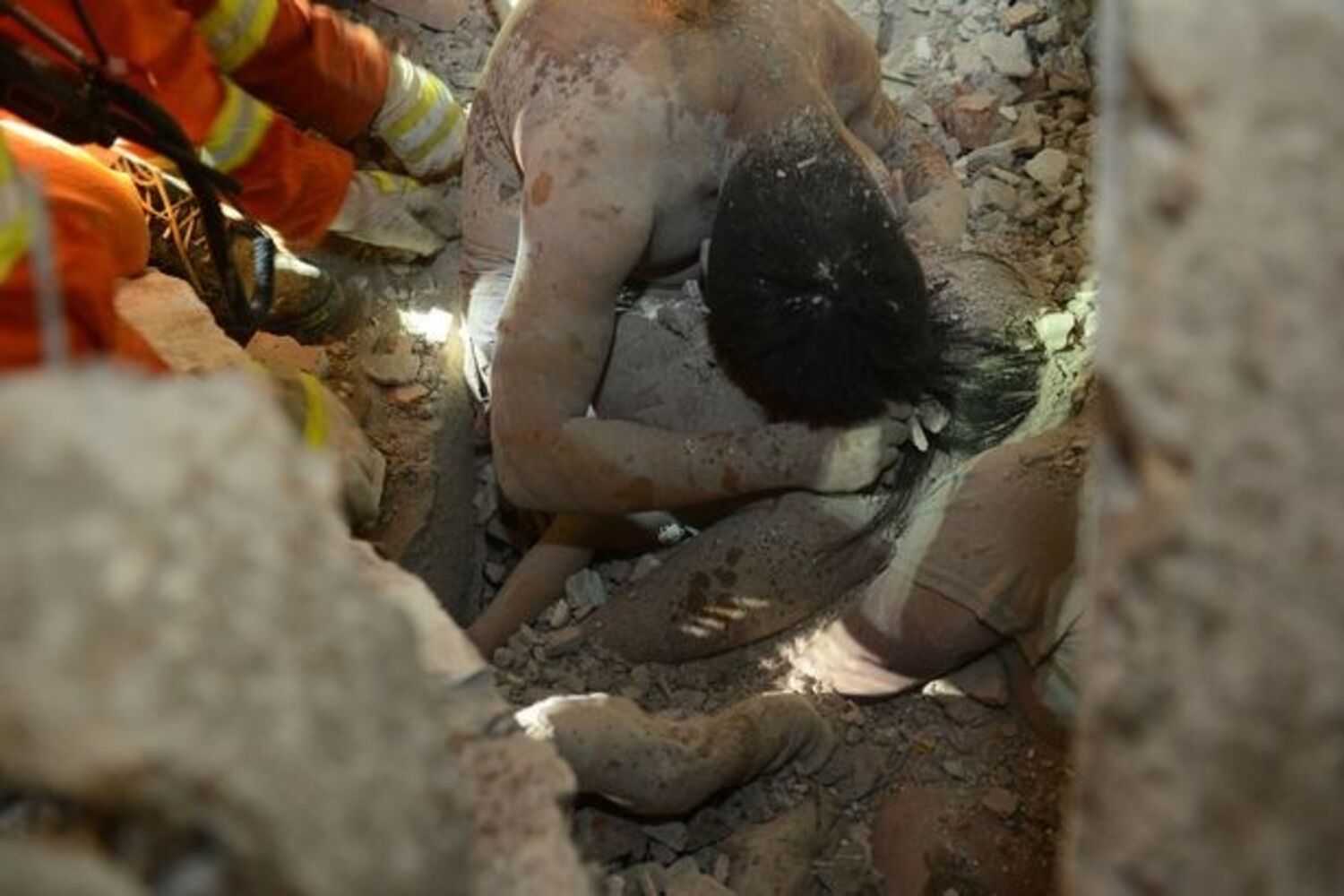 Wu foi encontrada com vida pela equipa de resgate, protegida entre os braços do seu pai, segundo descreveram os jornais locais.
