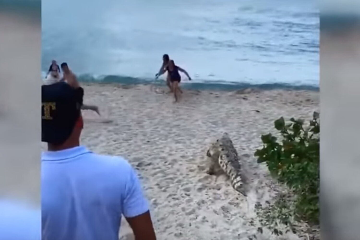 Um grupo de turistas e banhistas foi surpreendido por um crocodilo gigante que apareceu vindo de um arbusto numa praia no norte da Colômbia.