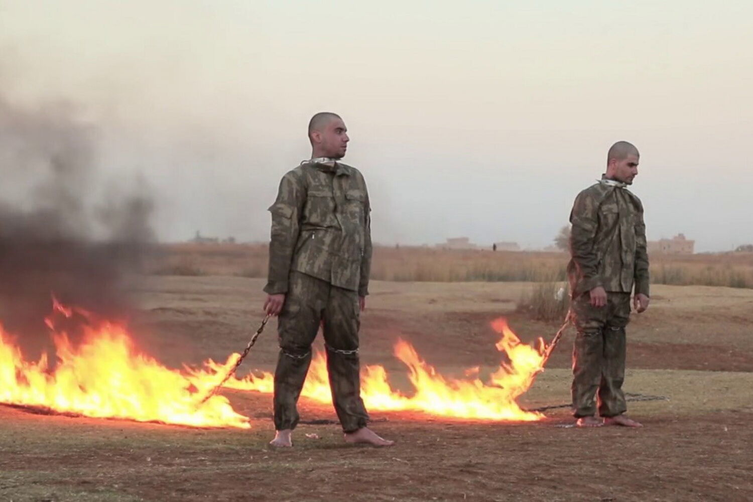 Um vídeo difundido na noite de quinta-feira pela "Província de Alepo" do Daesh mostra dois homens identificados como soldados turcos feitos reféns pelos 'jihadistas' a serem atados e imolados pelo fogo.