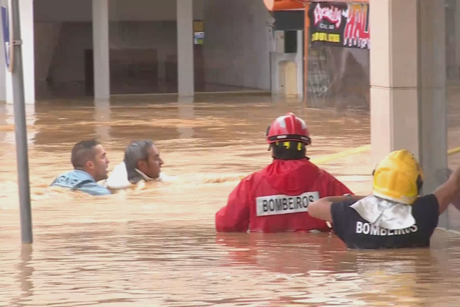 As equipas de socorro estão a resgatar pessoas que ficaram retidas em locais inundados pelas águas na baixa da cidade e que não conseguem sair pelos seus próprios meios.