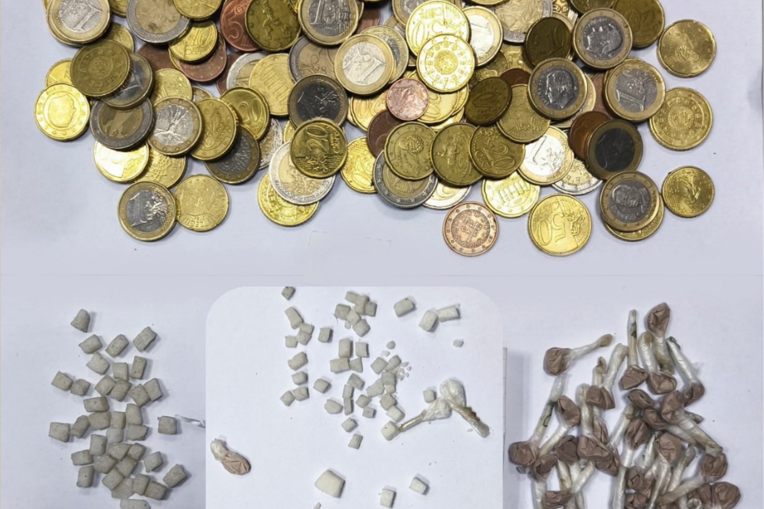 A dupla de traficantes foi apanhada em flagrante delito na posse de 54 doses de cocaína e 130 de heroína. O produto estupefaciente foi apreendido, assim como um telemóvel e 122,28 euros em numerário.