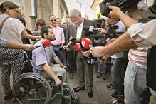 Posteriormente, a cidadã apertou a mão ao líder socialista e perguntou se com esse cumprimento estaria garantido que não haveria cortes nas pensões.