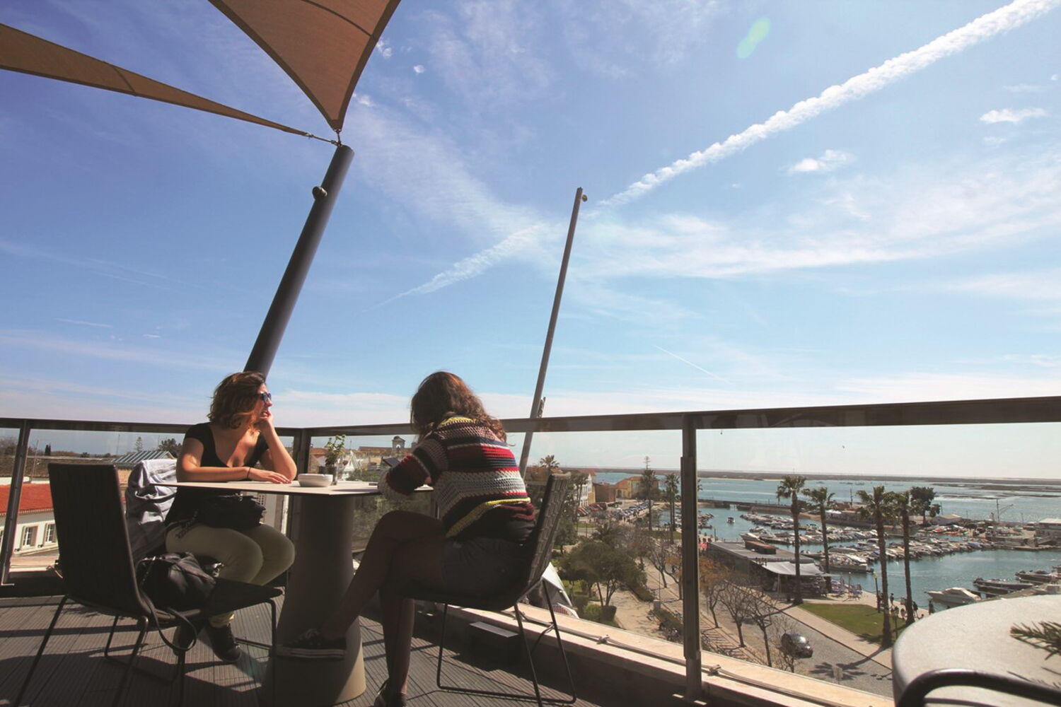 Possui uma vista única e talvez das mais belas sobre a cidade de Coimbra, onde se vê o rio Mondego, a zona da Baixa e o Largo da portagem ou Santa Clara.Nome: Loggia ( junto ao Museu Machado de Castro )Morada: Rua Borges Carneiro, 40Telefone: 239 853 076Horário: 10h00 às 22h30A destacar: Vista sobre a Universidade e a Sé VelhaCom vista para a Ria (Faro)Está situado no topo do hotel faro e oferece uma vista panorâmica sobre a ria Formosa, o centro histórico e a marina. O serviço de bar tem uma vasta carta de cocktails e de snacks e está ainda associado ao restaurante ‘Ria Formosa’ durante as horas das refeições.Nome: Rooftop do Hotel FaroMorada: Praça D. Francisco Gomes, 2Telefone: 289 830 830Horário: 07h00 às 00h00A destacar: Muito requisitado para amantes de birdwatchingUm luxo no rio Cávado (Esposende)A esplanada é simples, mas sofisticada, construída sobre o rio Cávado, mas com vista para o Atlântico. No centro de Esposende, o Sky Valley Lounge Terraza tira proveito do que a cidade, que é "um privilégio da natureza", tem de melhor. Para uma das melhores experiências de sushi da região, para beber uma inigualável sangria de champanhe ou, simplesmente, para saborear um café. Um pequeno luxo a não perder.Nome: Morada: Av. Eng. Arantes e OliveiraTelefone: 913 947 843Horário: 12h00 às 02h00A destacar: Sushi de excelênciaOlhos no mar em São Torpes (Sines)O restaurante Kalux fica de frente para a praia de São Torpes, em Sines. A esplanada é muito procurada ao final da tarde, onde é possível assistir ao pôr do sol no oceano, num ambiente descontraído e muito ligado à cultura do surf e do mar. As ‘tostas especiais’ têm muita saída.Nome: Restaurante KaluxMorada: Praia de São Torpes, SinesTelefone: 269 030 788Horário: 10h00 às 20h30A destacar: Durante o verão são promovidas festas com DJ. Acontecem ao final da tarde.