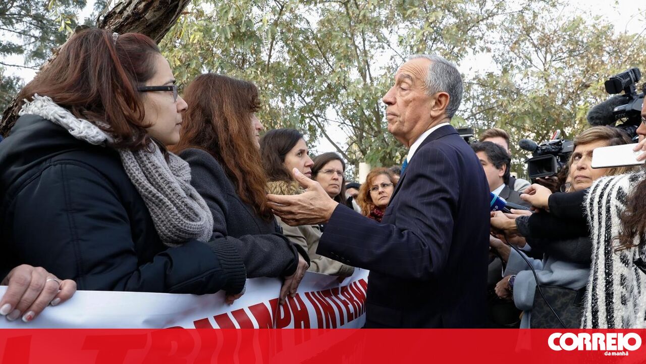 Marcelo Rebelo de Sousa conversou com trabalhadores da antiga Triumph, na grande maioria, mulheres, que protestavam à entrada da Escola Secundária de Camarate, no concelho de Loures, onde também foi confrontado com um protesto contra o encerramento da estação local dos CTT.