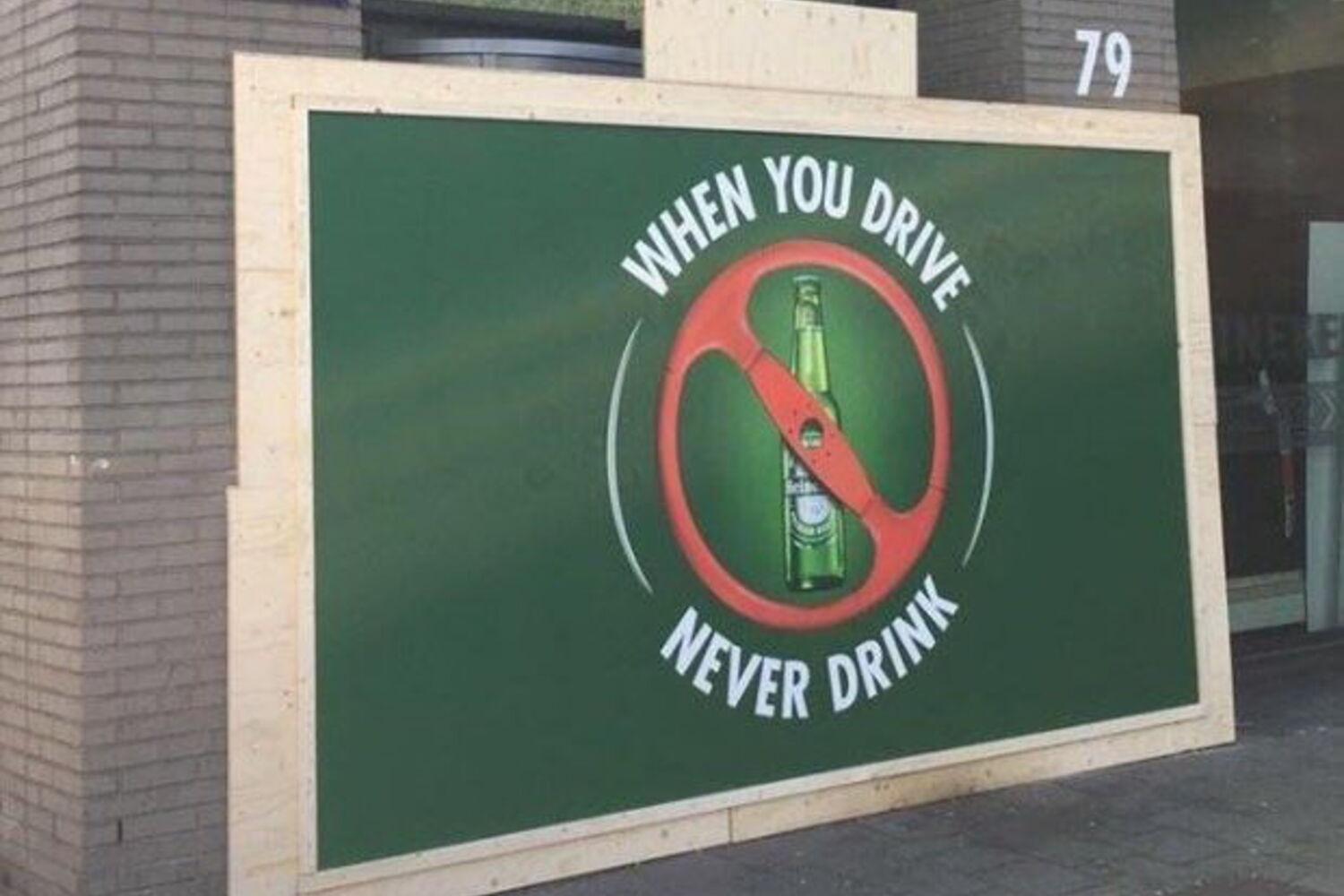 Apesar dos prejuízos, a cervejeira reagiu ao acidente do passado dia 14 de maio com humor. A tapar os estragos, colocou uma placa gigante de madeira onde se pode ler: "Quando conduzir, nunca beba".