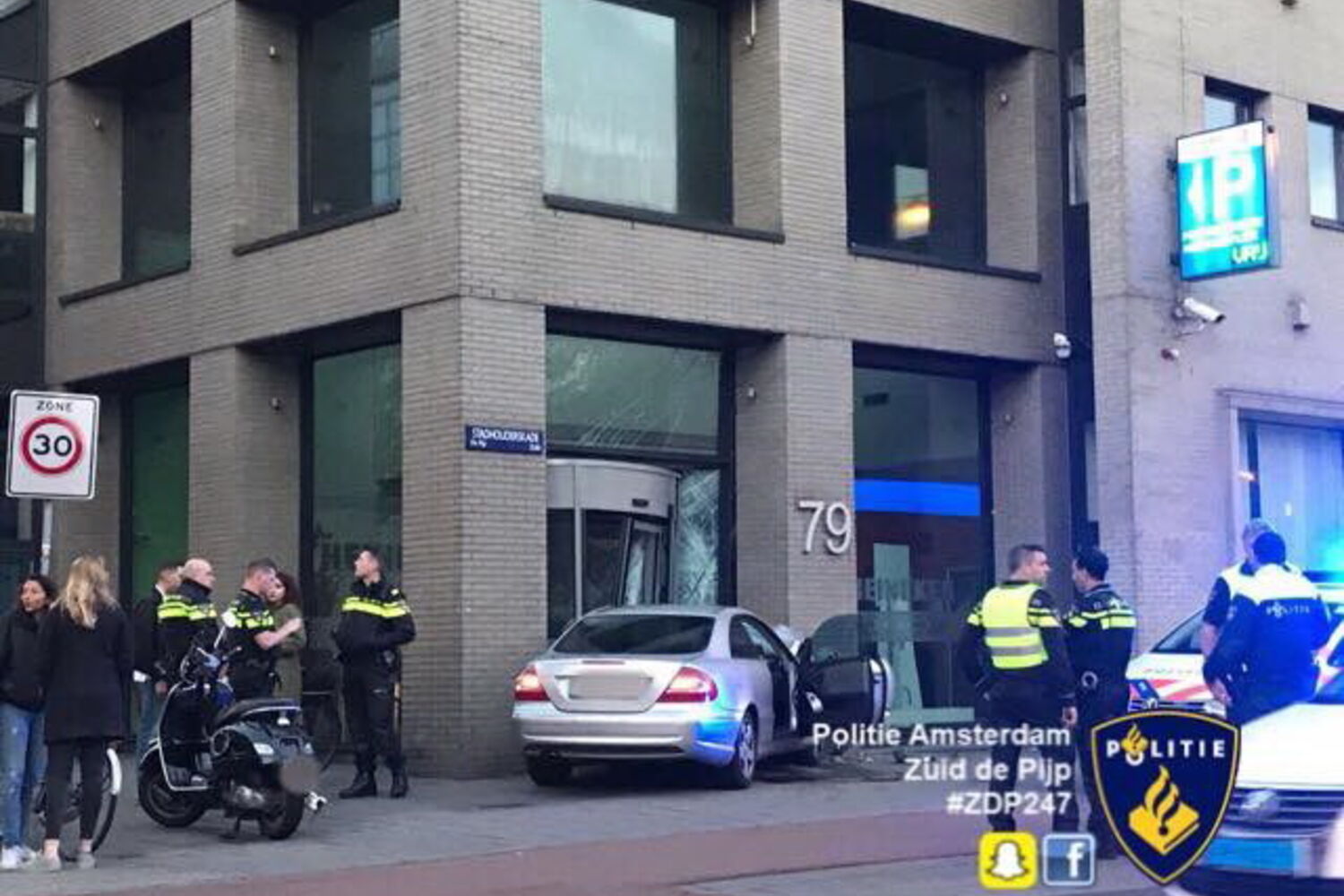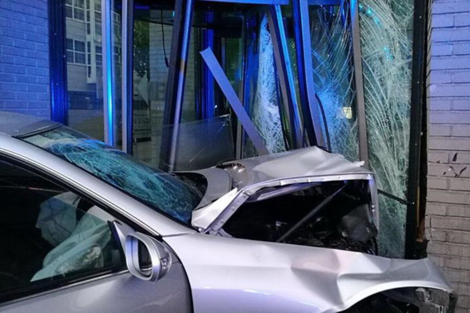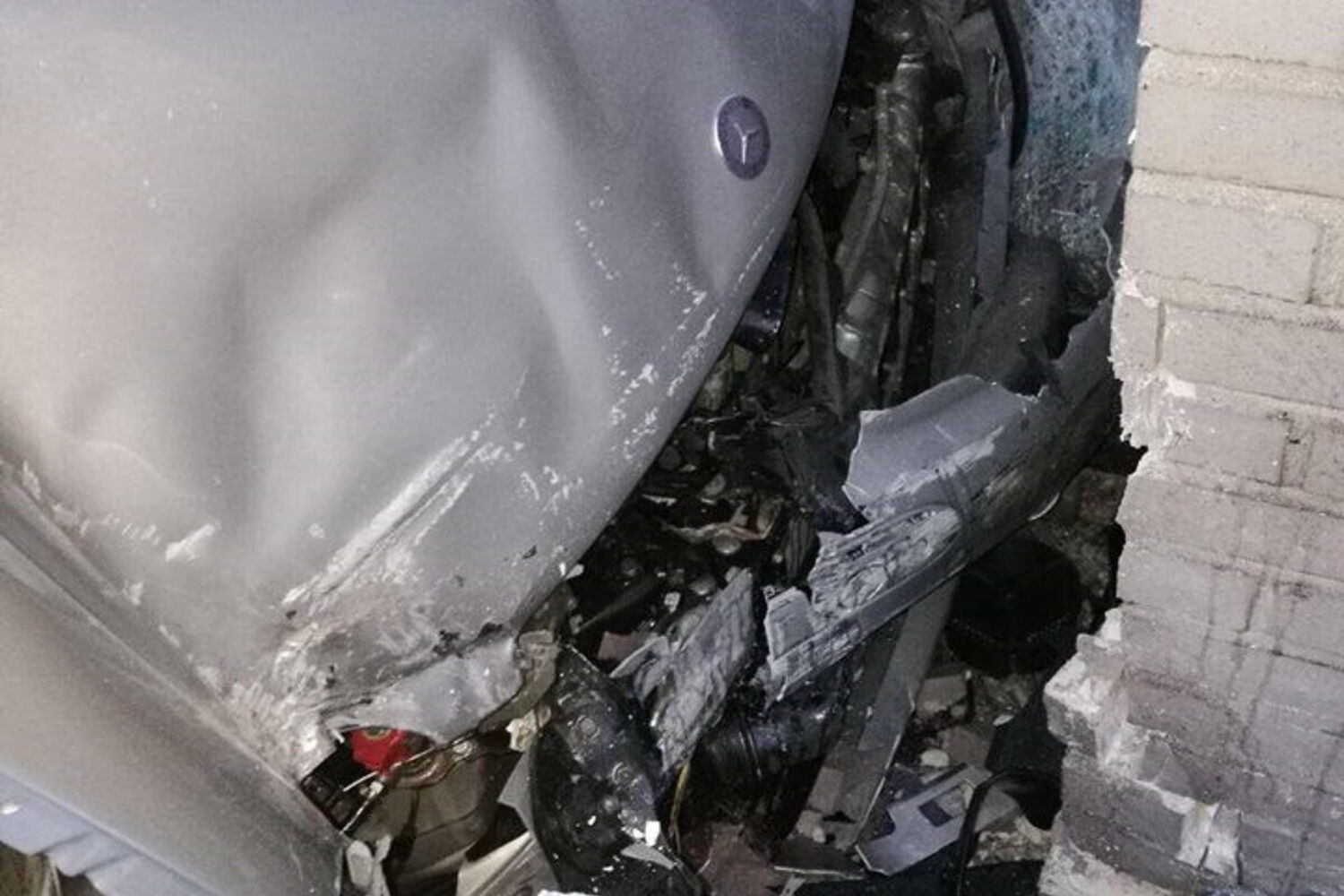 A entrada da Heineken ficou completamente destruída, assim como a frente do Mercedes envolvido no acidente. O jovem escapou apenas com ferimentos leves e foi detido no local.
