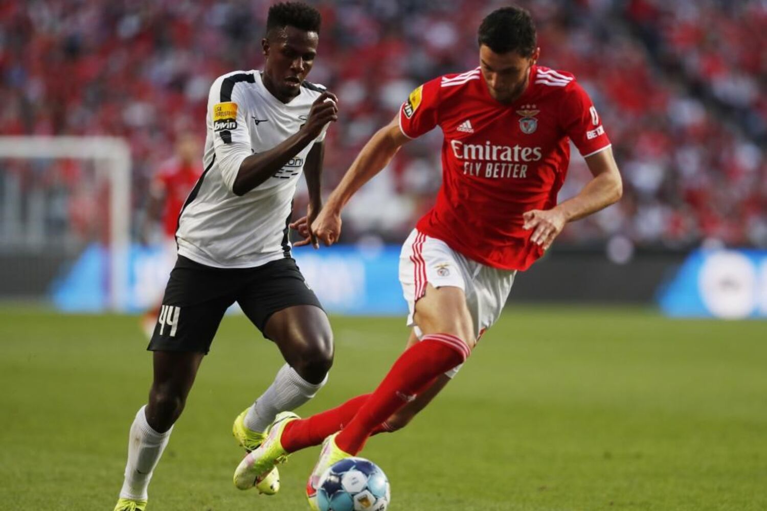 Oportunidade interceptada, Alejandro Grimaldo (Benfica) remate com o pé esquerdo do lado esquerdo da área. Assistência de Roman Yaremchuk.