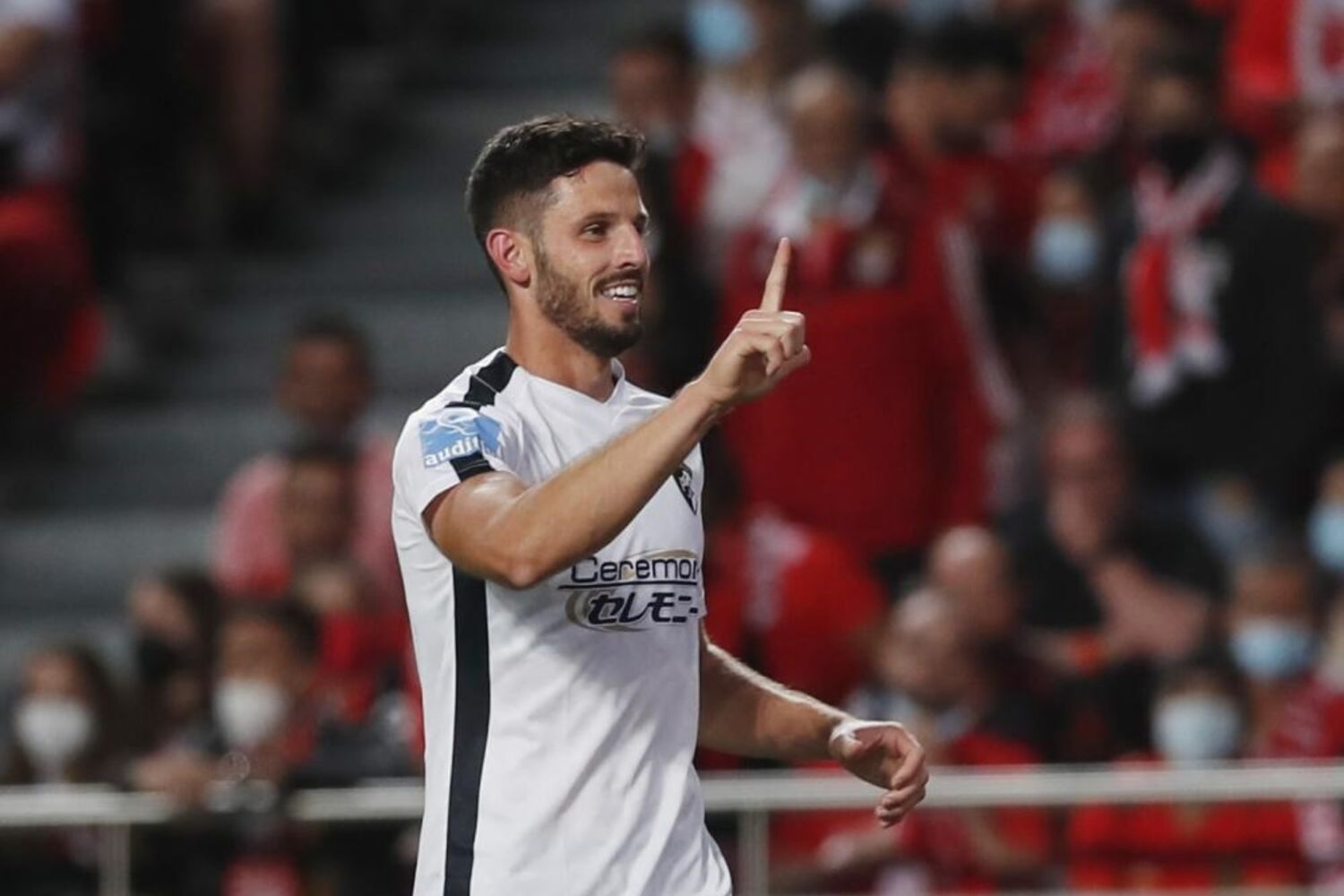 Oportunidade interceptada, Lucas Veríssimo (Benfica) de cabeça no coração da área. Assistência de João Mário com um cruzamento para a área.