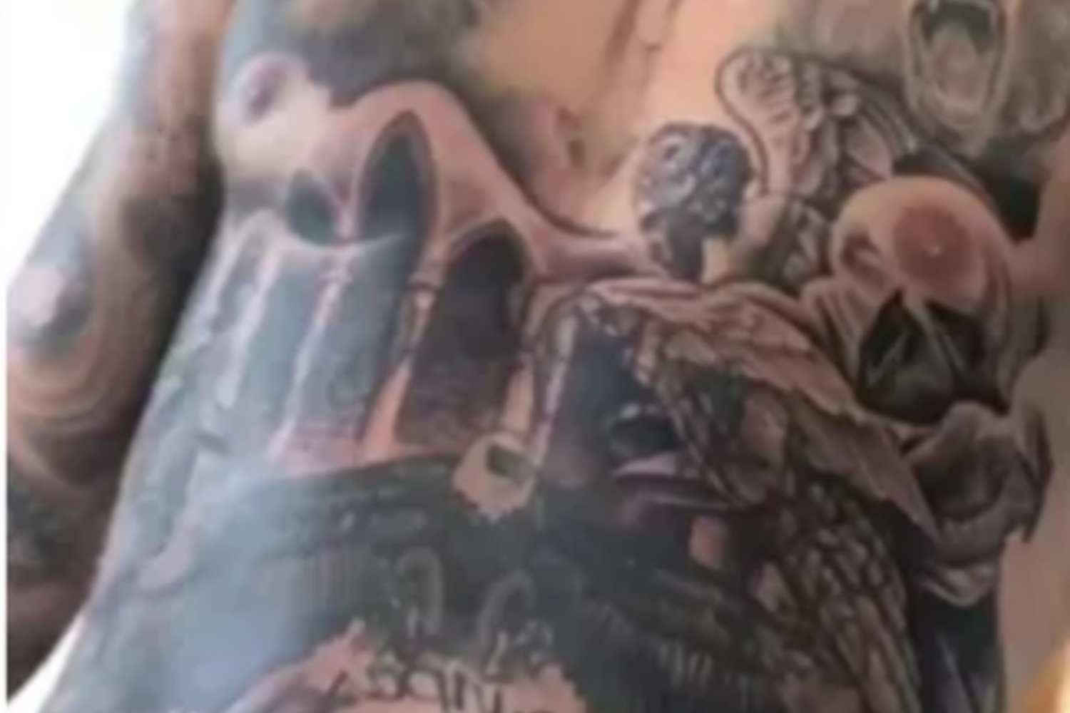 Nas imagens é possível ver que o artista tatuou a expressão "Son of God", filho de Deus, em português, entre outros desenhos que ainda não foram 'descodificados'.