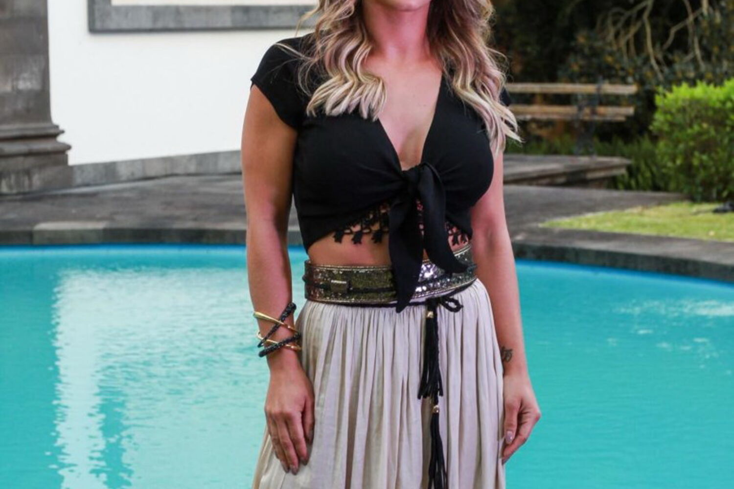 Na imagem, Luciana Abreu está a usar um biquíni reduzido que mostra a sua incrível forma física.