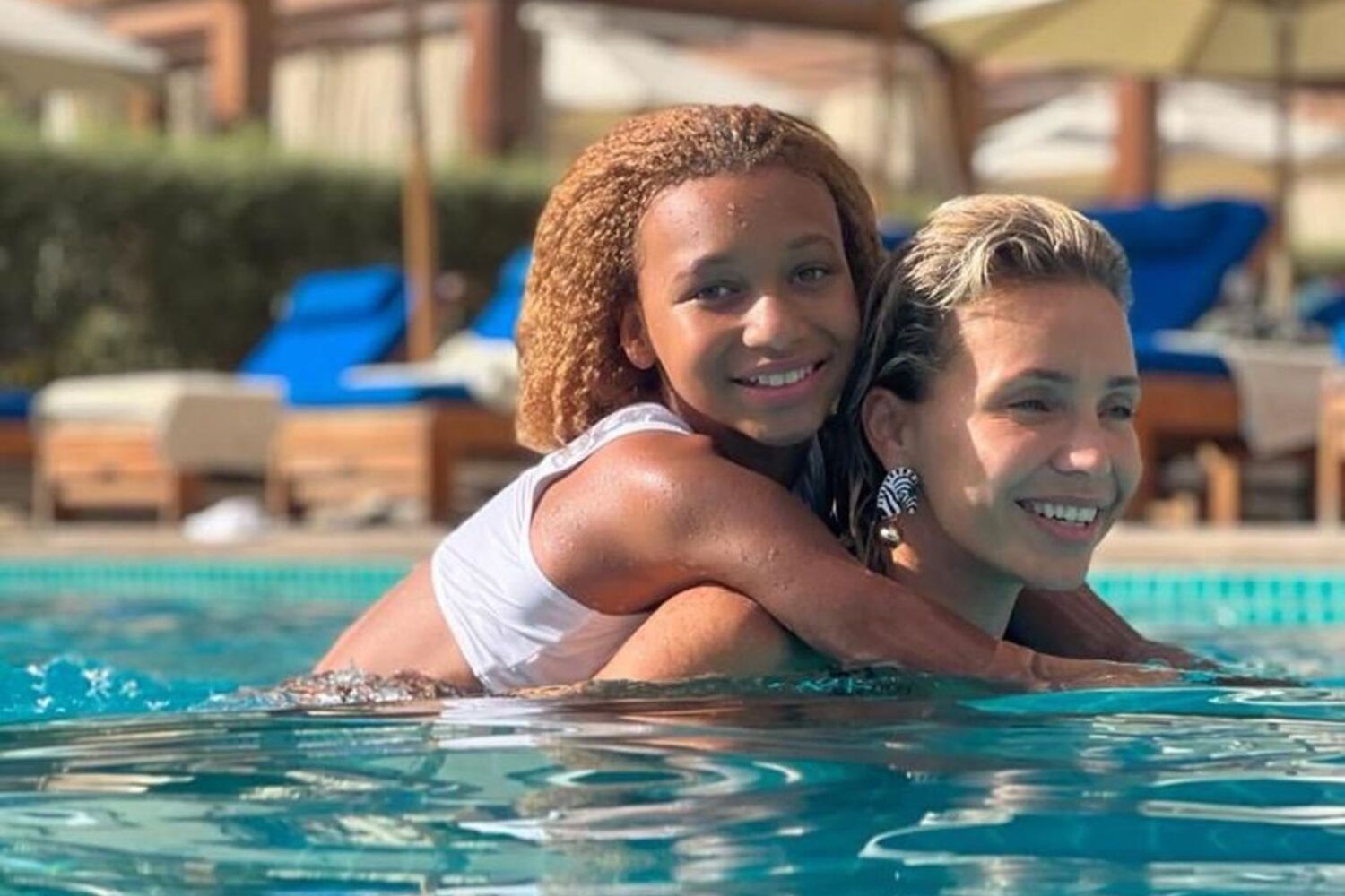 Atriz e apresentadora da SIC fez uma sessão fotográfica em biquíni na piscina do hotel onde está com a família.