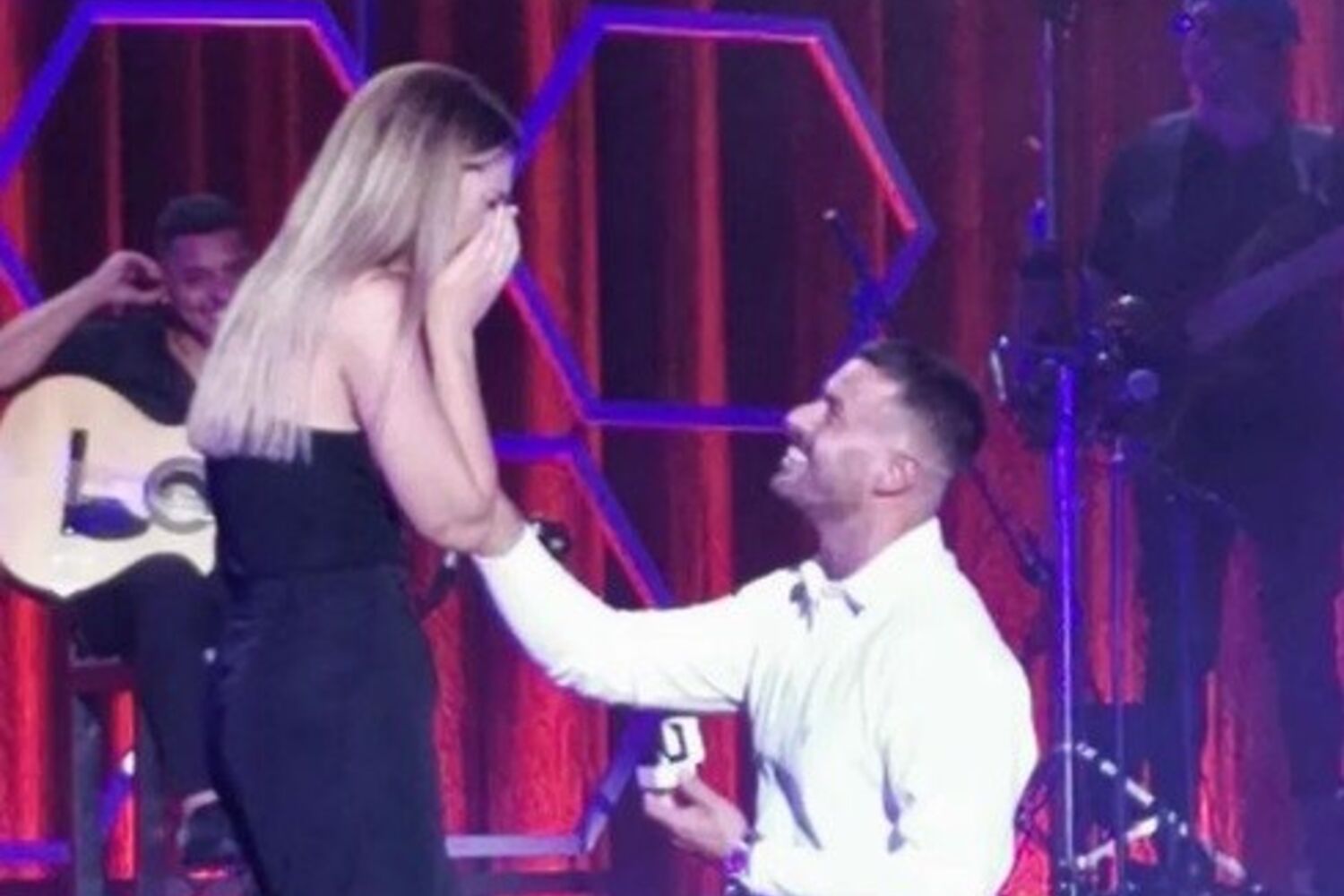 Marco Costa, também conhecido pelos seus dotes na cozinha, subiu ao palco, num momento combinado com o cantor, para fazer o pedido. "Ela disse: Sim. a minha noiva é lindaaaa. Amo-te", escreveu numa publicação na sua conta de Instagram.