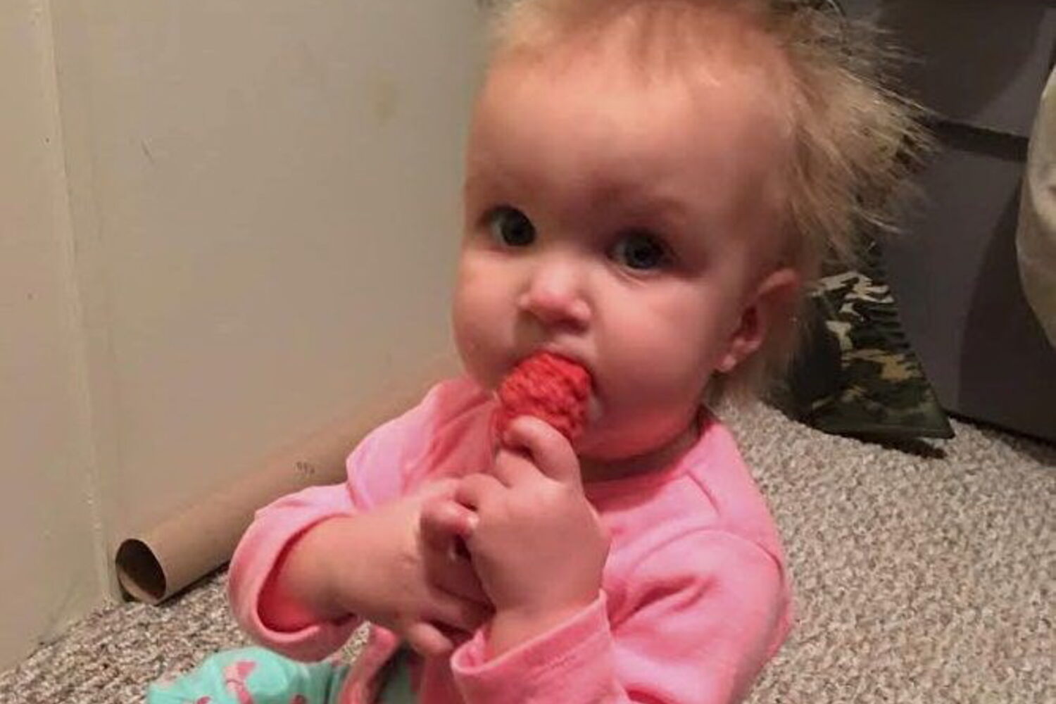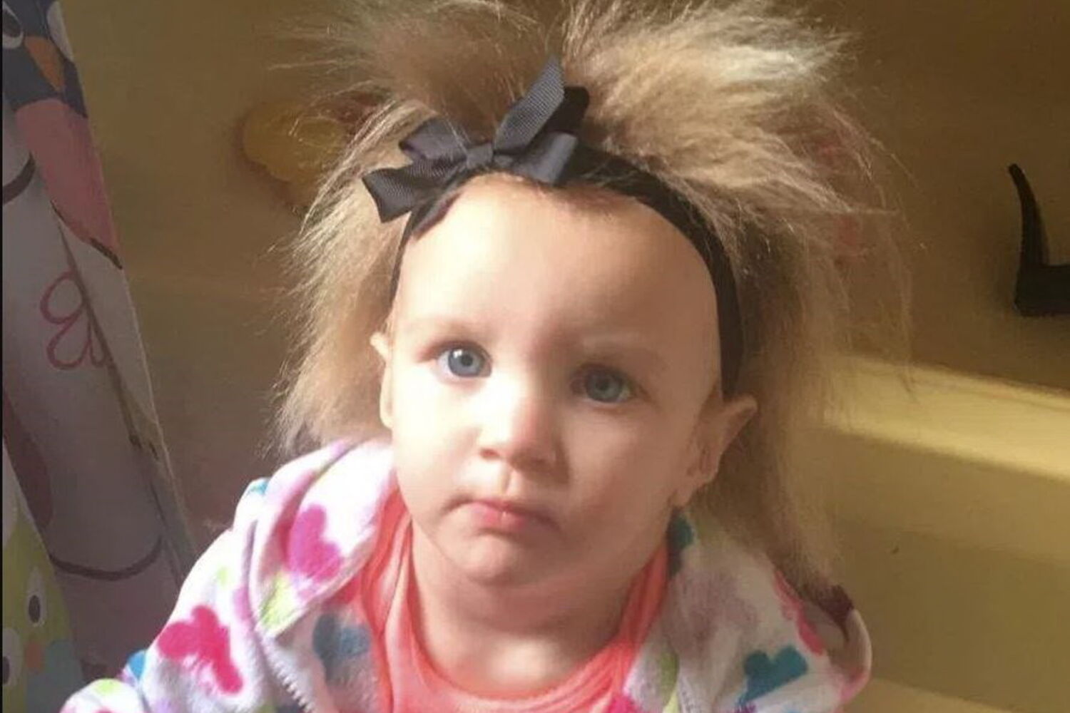 Phoebe, de 21 meses, é uma das cem crianças no mundo cuja doença foi diagnostiscada. O seu cabelo é branco e brilhante, mas permanece constantemente estático.