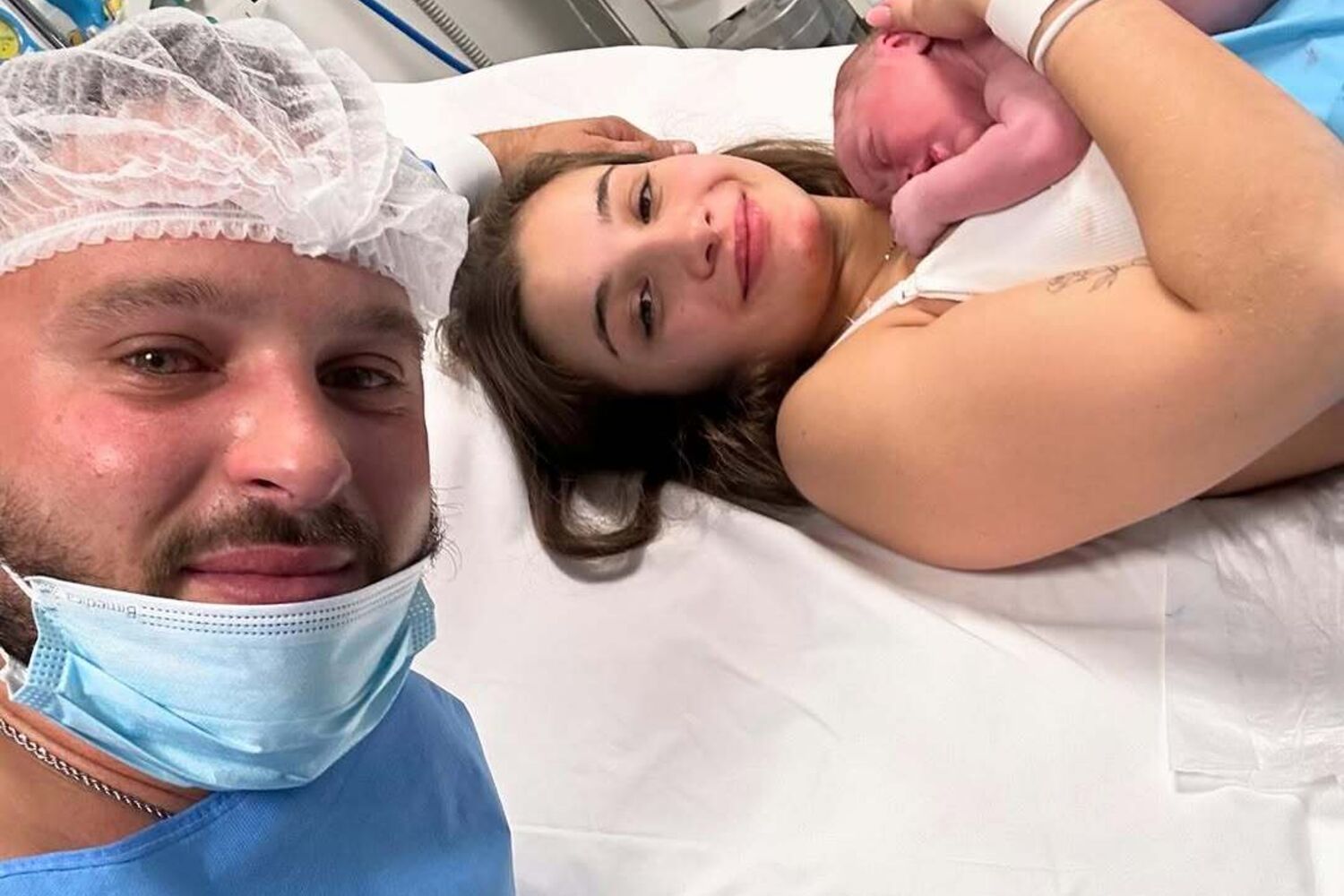 Na imagem, Miguel Vicente surge visivelmente emocionado ao lado da companheira, Beatriz Castro, e do recém-nascido que faz as delícias de toda a família.
