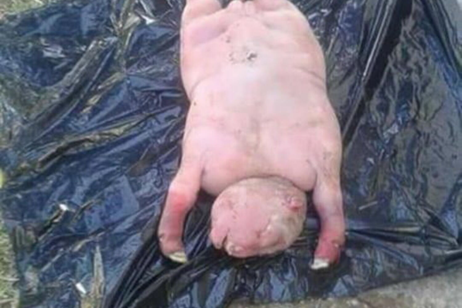 Nas fotografias divulgadas pelo jornal britânico Daily Mail, pode ver-se que o animal nasceu sem pelo e com traços físicos que não se assemelham a de uma ovelha.