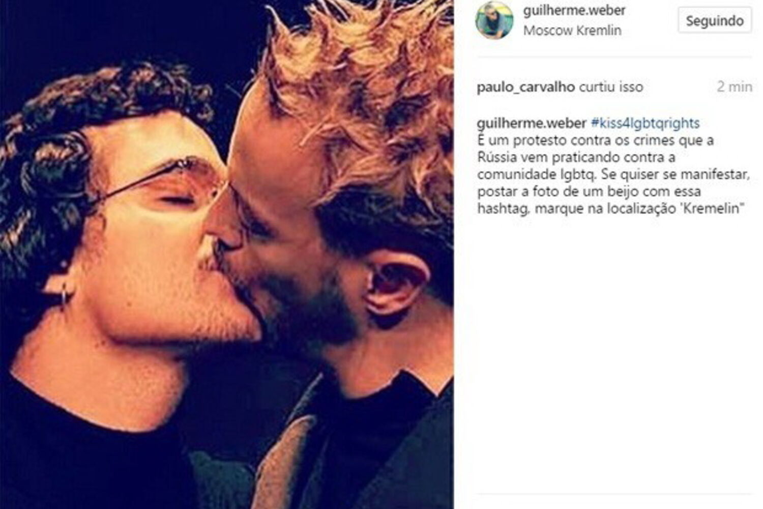 Considerando o seu gesto "insuficiente" face à situação dramática vivida no leste europeu, Guilherme convida os seguidores tomarem uma posição idêntica à sua, partilhando imagens a beijar pessoas do mesmo sexo, sendo homossexuais ou não.