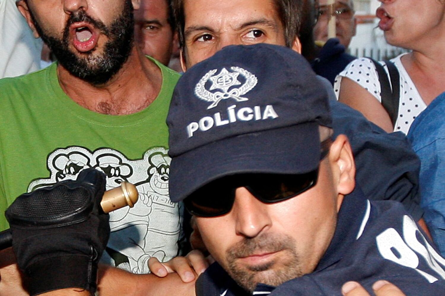 Os manifestantes rodearam o carro de Gaspar, batendo nas janelas com as mãos e os cartazes enquanto gritavam "gatuno", apesar das medidas de segurança, que teve de ser reforçada com duas equipas do piquete da PSP. Na entrevista, o governante disse que a subida da Taxa Social Única para os trabalhadores e a descida para as empresas não é um "prémio" para os patrões. Confrontado com o tipo de descontos feitos pelo conselheiro do Governo, António Borges, que tem um contrato com a Parpública no valor de 25 mil euros, Gaspar disse desconhecer "os detalhes do contrato".