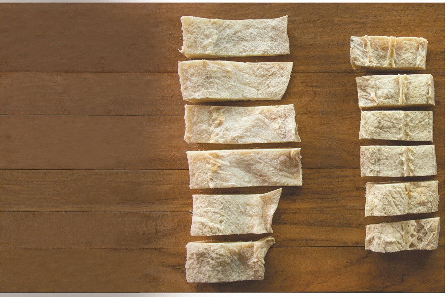 Na prática, além do tempo de cura prolongado, a flor de sal é responsável, segundo os irmãos Ricardo e Bernardo Alves, "por um bacalhau com uma textura mais suave, mais cremosa e delicada".