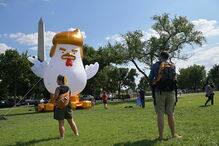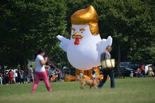 Na passada quarta-feira, um balão apelidado de "Galinha Don" foi colocado próximo da Casa Branca, em forma de protesto.