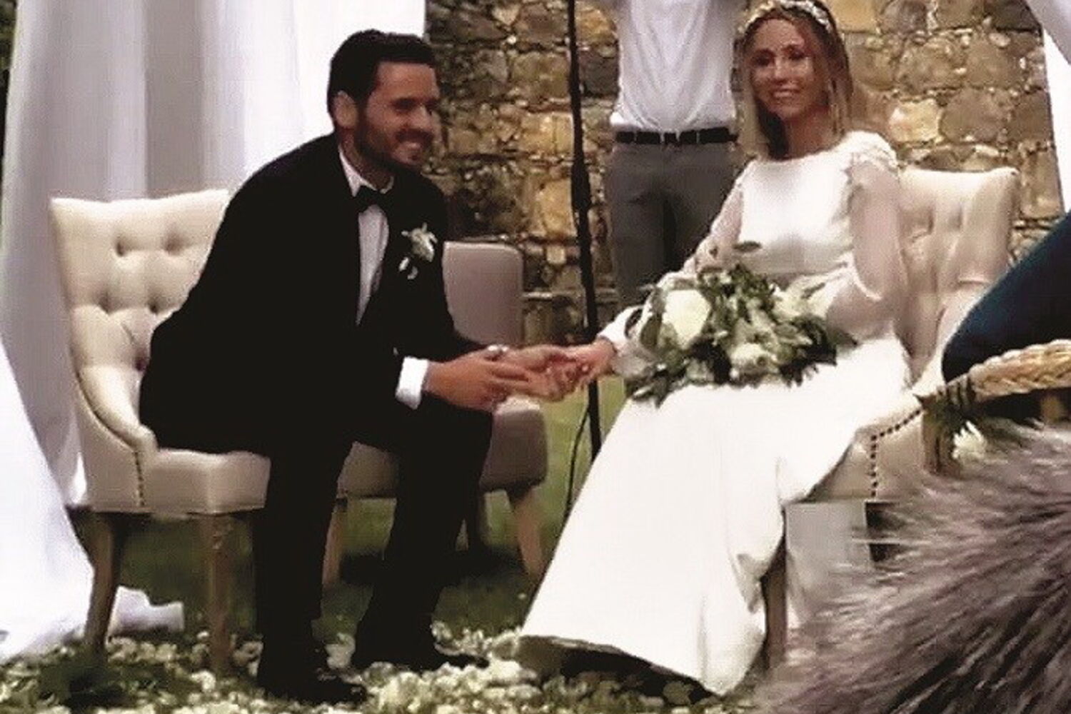 A atriz chegou a cavalo e foi acompanhada pelos pais até ao local onde, o noivo, David Amaro, a esperava.