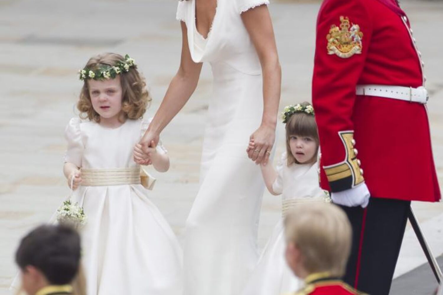 À entrada da Abadia de Westminster, coube a Pippa Middleton, enquanto dama de honor da irmã, carregar a longa cauda do vestido de noiva, pelo que a transmissão televisiva evidenciou o traseiro da britânica de 27 anos.