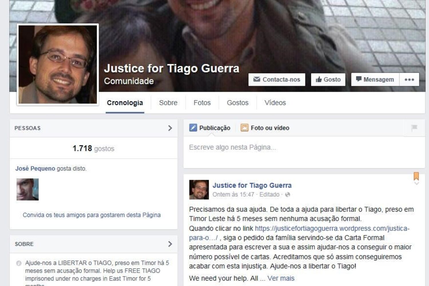 Tiago Guerra foi detido para interrogatório a 18 de outubro de 2014, passou três dias na esquadra da polícia de Caicoli e a 21 do mesmo mês foi ouvido no Tribunal de Díli, quando o juiz ordenou a sua prisão preventiva, entrando na cadeia de Becora, onde ficou preso até 16 de junho do ano passado.