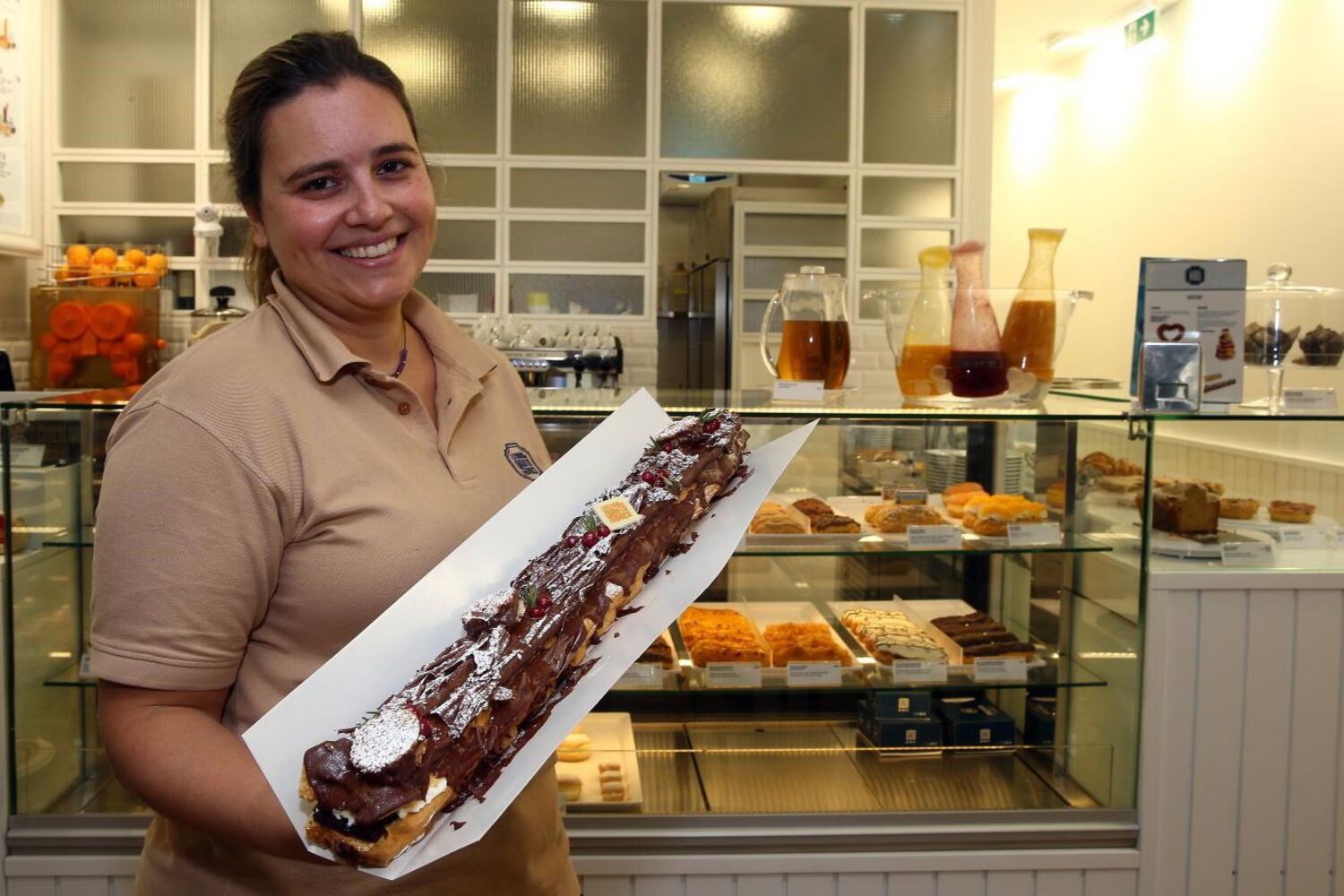 Se quiser levar o formato XXL tem de reservar, contudo, se para si for suficiente o tamanho individual poderá provar o éclair natalício até dia ao Dia de Reis, 6 de janeiro. O tamanho XXL tem um custo de 25 €, enquanto que o tamanho mais pequeno custa 3,20 €.