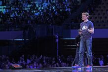 Cosgrave tentou exemplificar um tutorial sobre o 'live streaming' na rede social Facebook, mas o seu telemóvel não respondeu à velocidade exigida num evento de tecnologia, como provou a imagem do equipamento projetada em dois ecrãs gigantes do palco central.