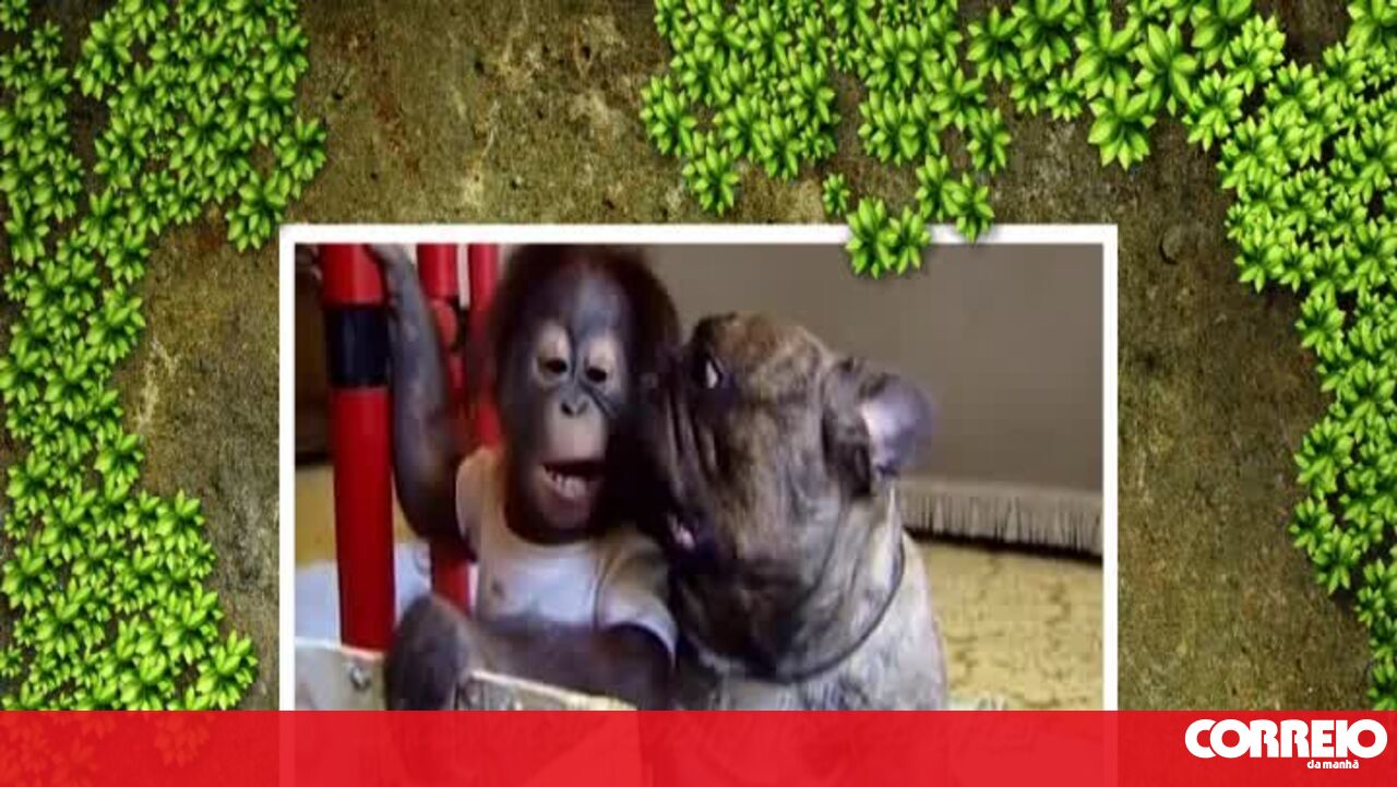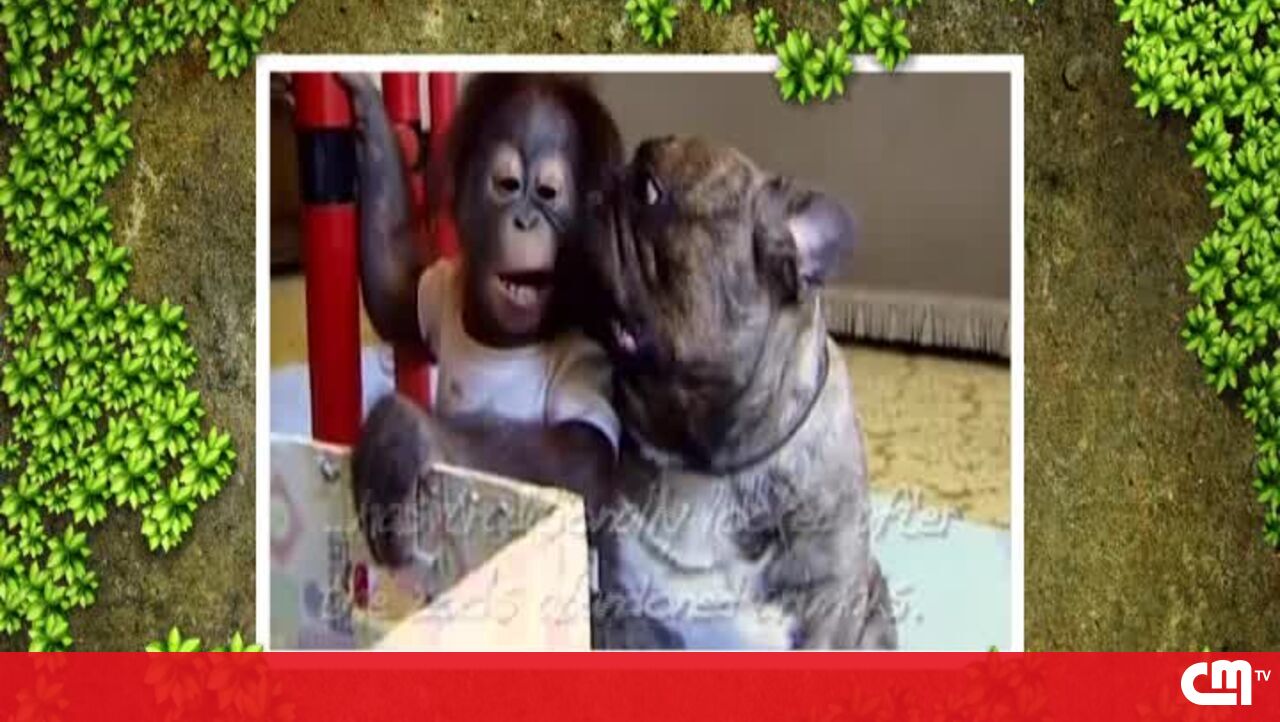 Este Bulldog é tão beijoqueiro que nem um chimpanzé bebé escapou.