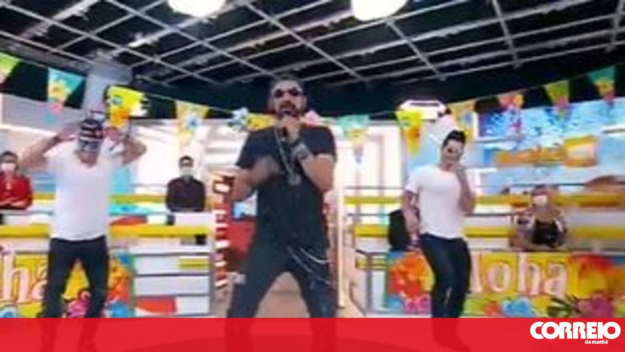Iran Costa canta tema 'Sente a pressão' e alinha no jogo do hula hoops