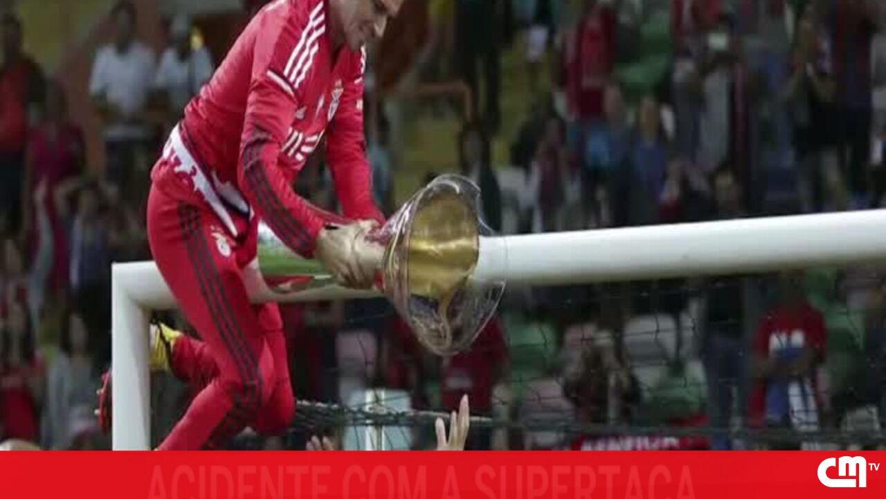 Como aconteceu na temporada passada, depois de o Benfica vencer o campeonato e também a Taça de Portugal, Paulo Lopes subiu a uma das balizas com o troféu mas calculou mal e acabou por partir o rebordo da taça.