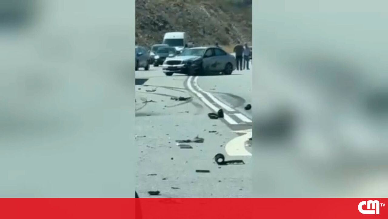Três feridos em colisão entre quatro carros no IC27. Trânsito cortado nos dois sentidos